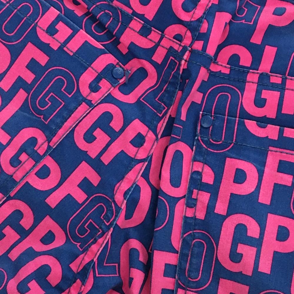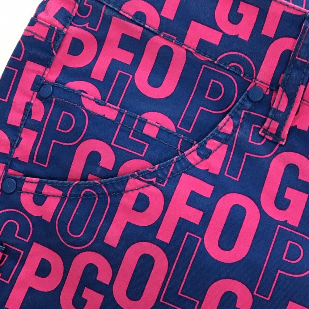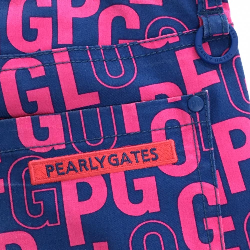 パーリーゲイツ パンツ ネイビー×ピンク 英字総柄 レディース 0(S) ゴルフウェア PEARLY GATES