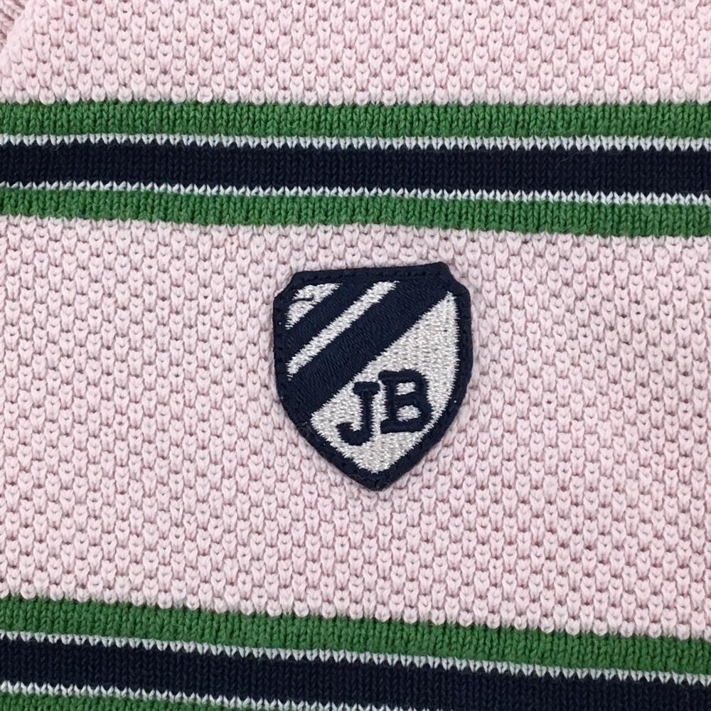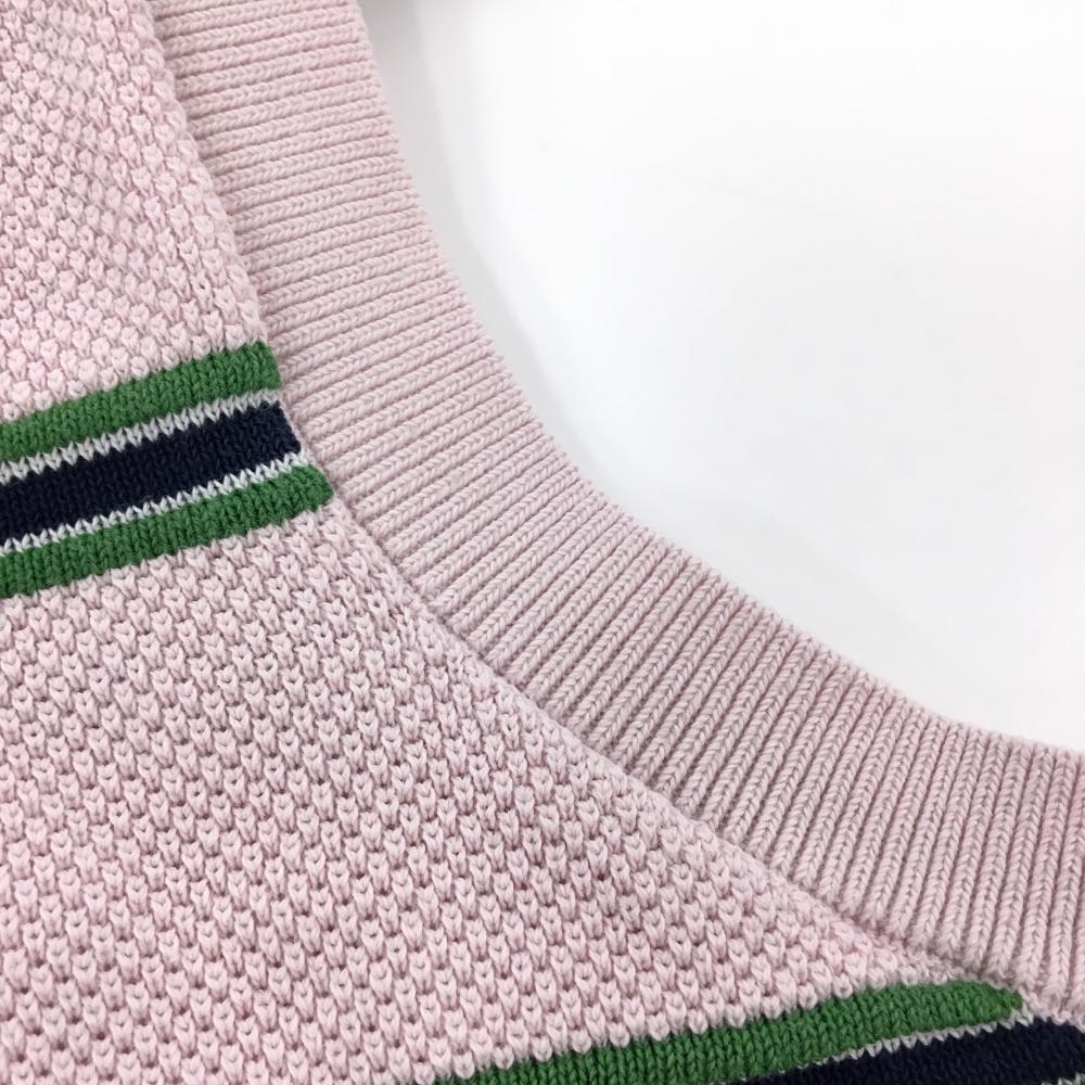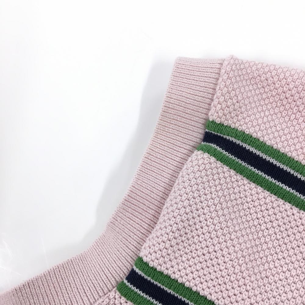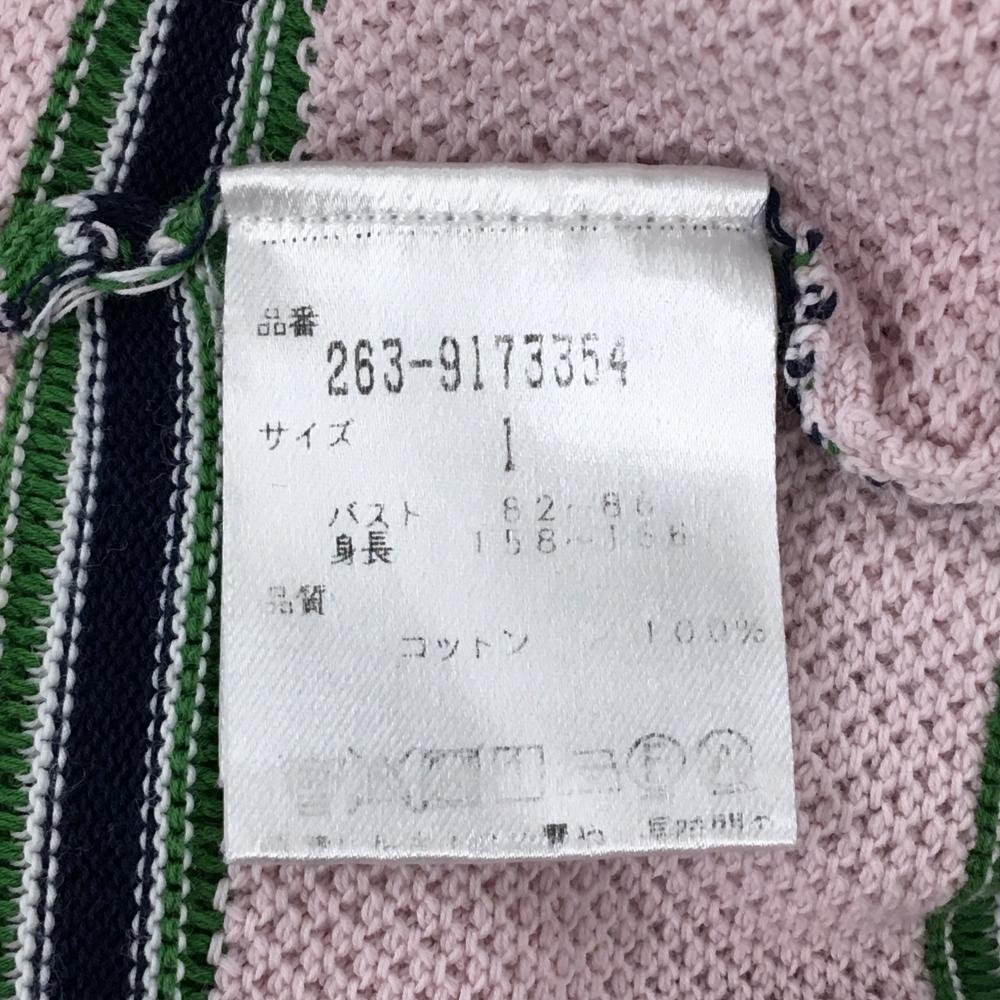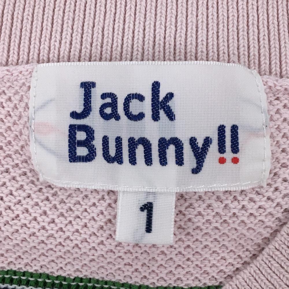 【美品】ジャックバニー ニットベスト ライトピンク×グリーン ボーダー調 コットン100% レディース 1(M) ゴルフウェア Jack Bunny