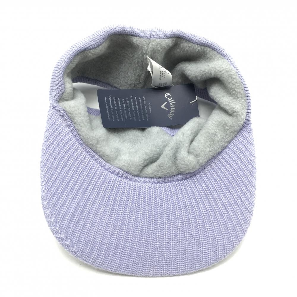 キャロウェイ サンバイザー パープル×白 ビッグロゴ 内側起毛 紙タグ付 レディース FR ゴルフウェア Callaway