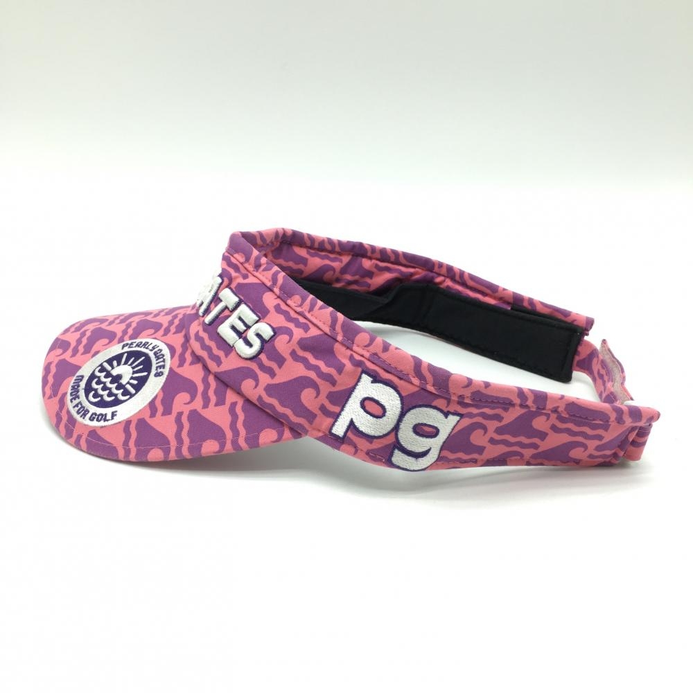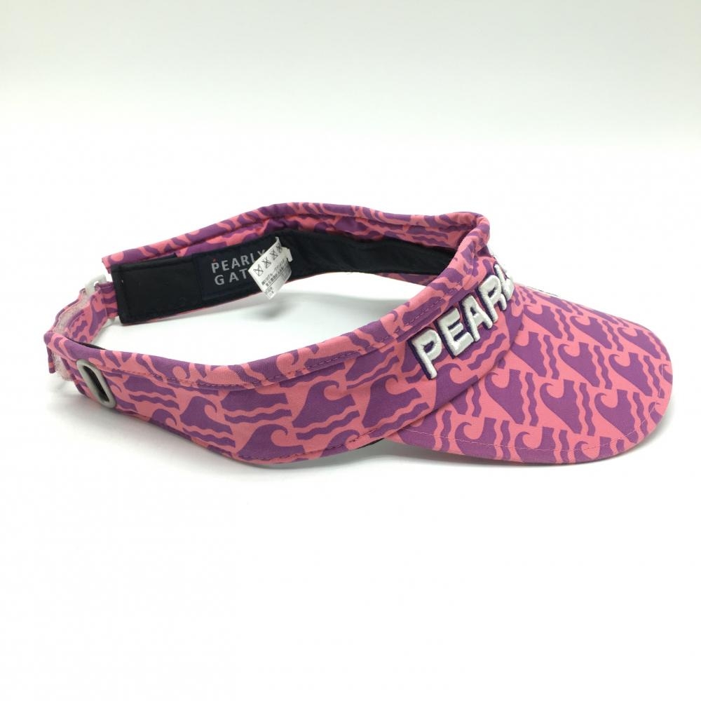 【超美品】パーリーゲイツ サンバイザー ピンク×ライトパープル ウェーブ総柄 立体ロゴ FR ゴルフウェア PEARLY GATES