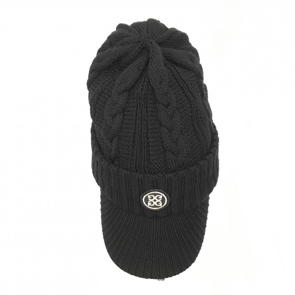 【美品】ジーフォア つば付ニット帽 黒 ロゴ白 内側フリース 1098 ゴルフウェア G/FORE