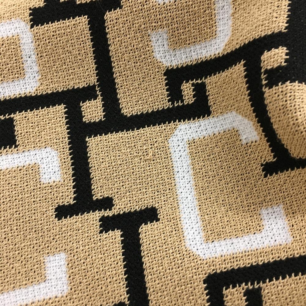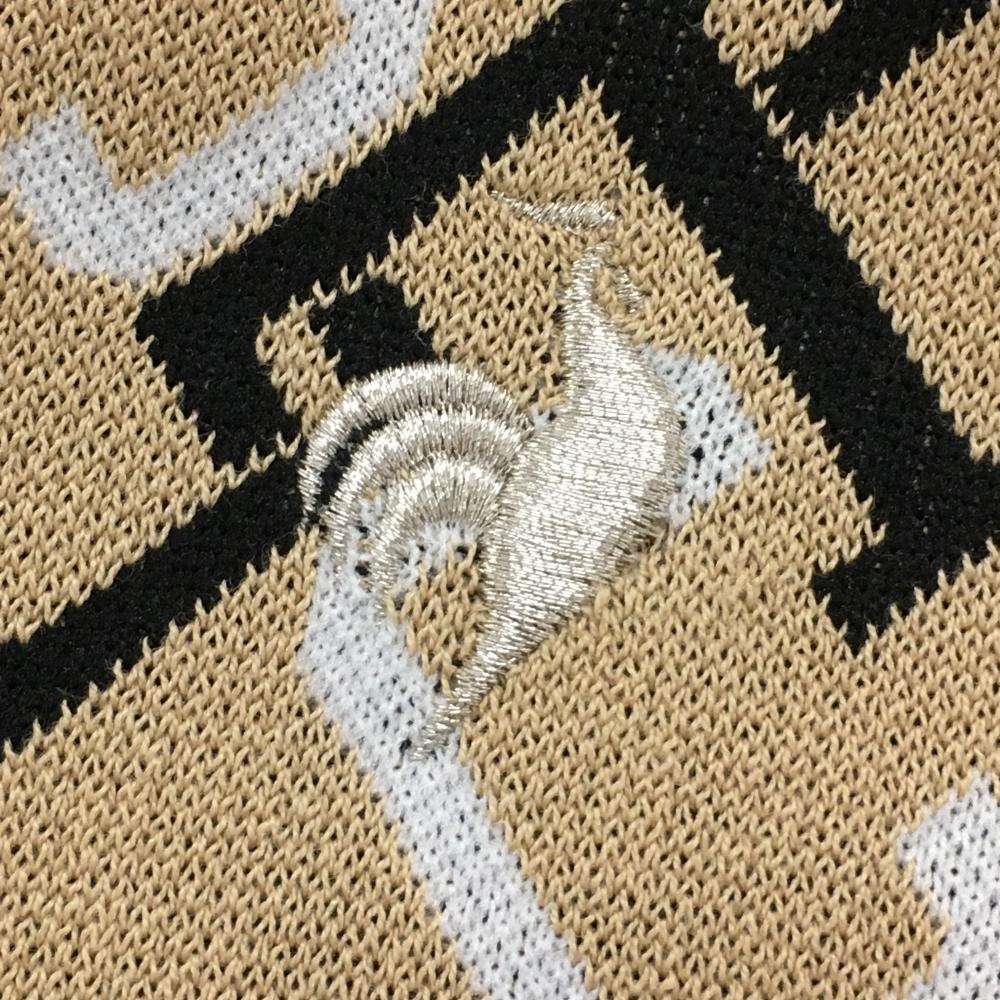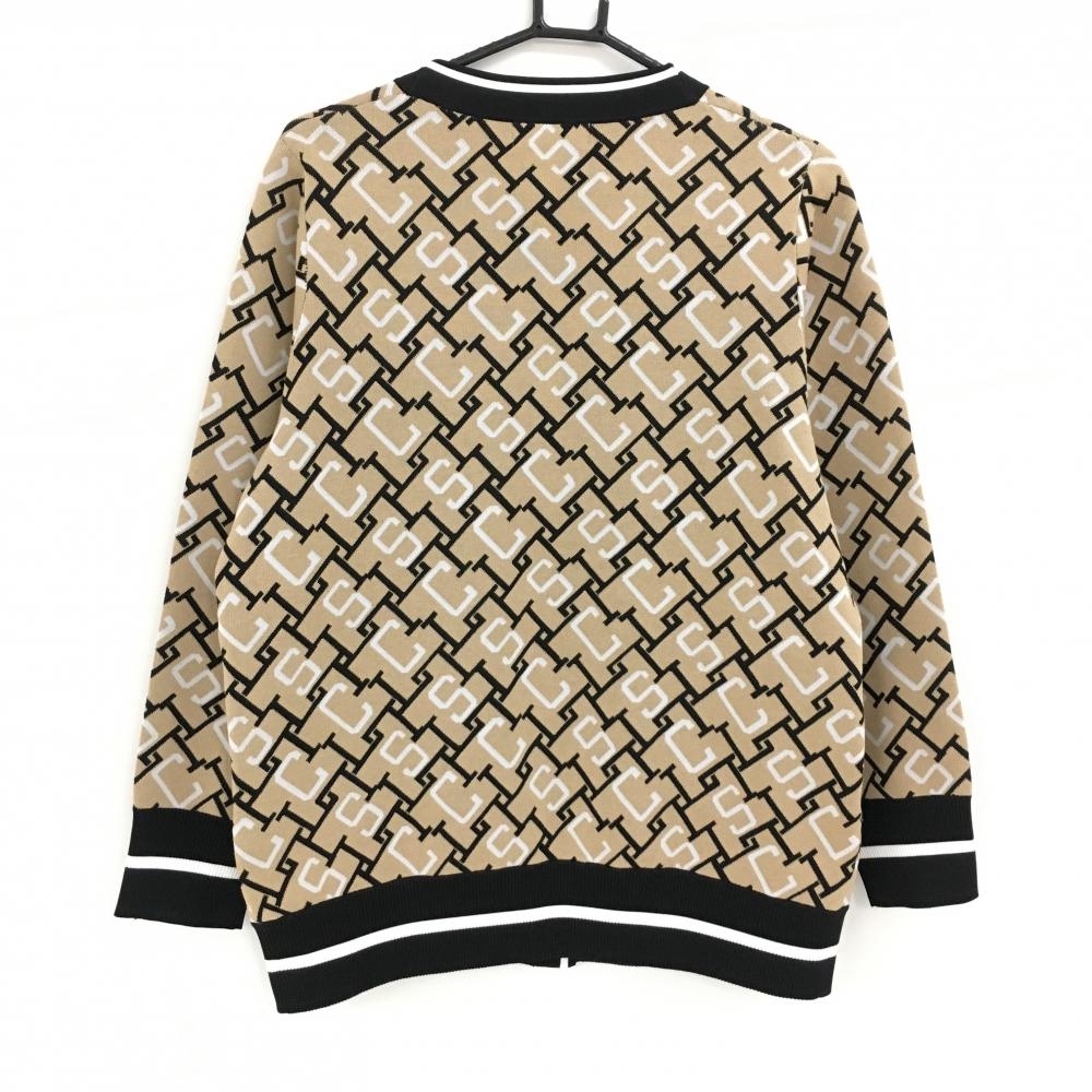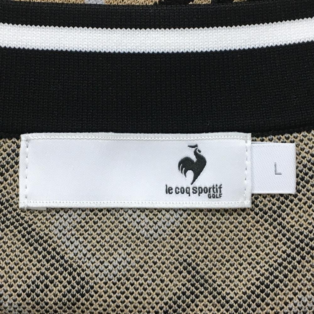 【美品】ルコックゴルフ ニットカーディガン ベージュ×黒×白 総柄 Vネック レディース L ゴルフウェア 2024年モデル le coq sportif