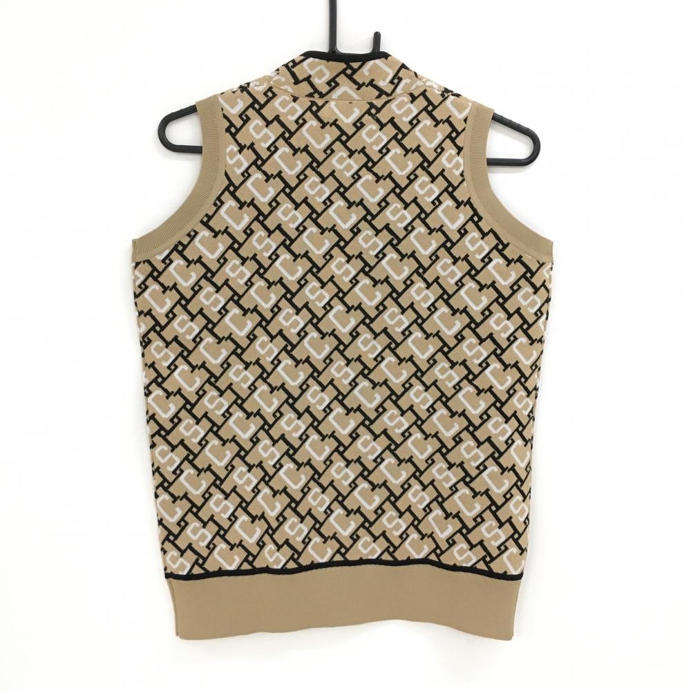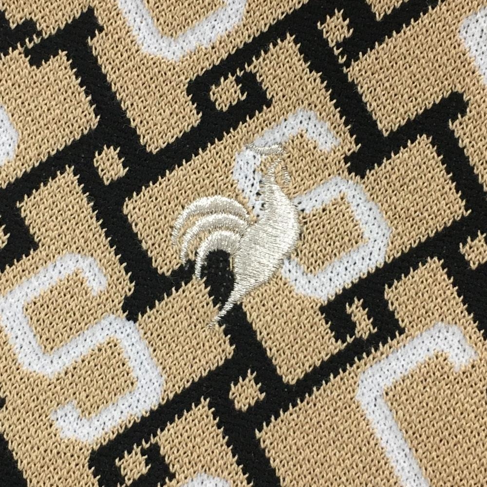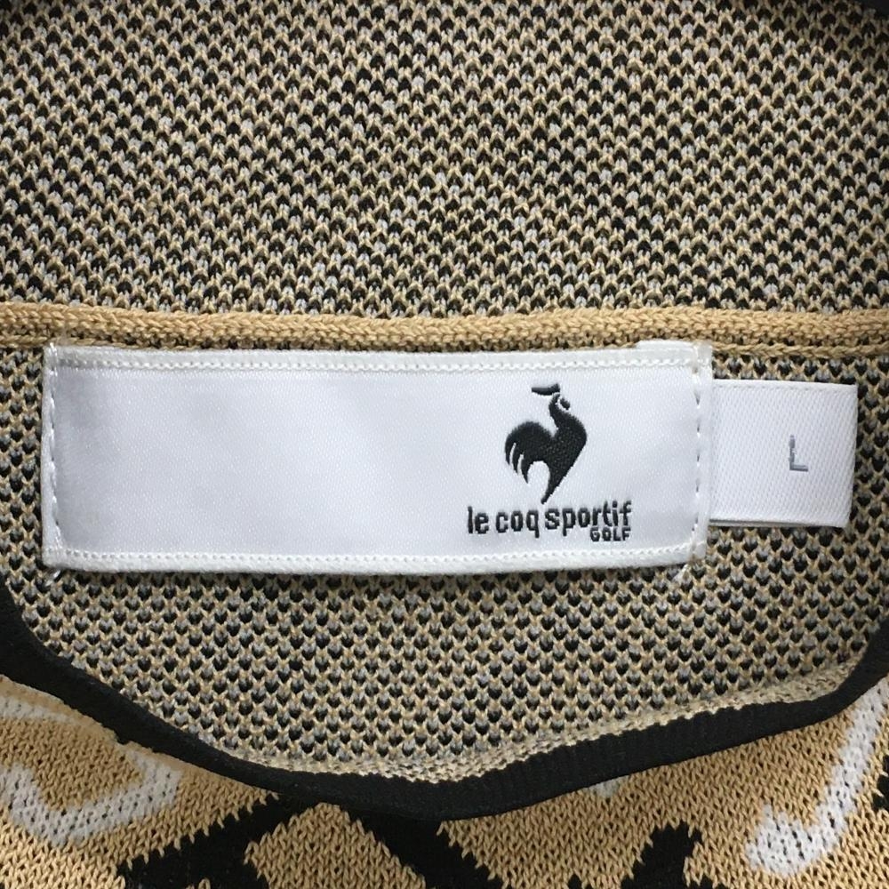 【超美品】ルコックゴルフ ハイネックニットベスト ベージュ×黒×白 総柄 レディース L ゴルフウェア 2024年モデル le coq sportif