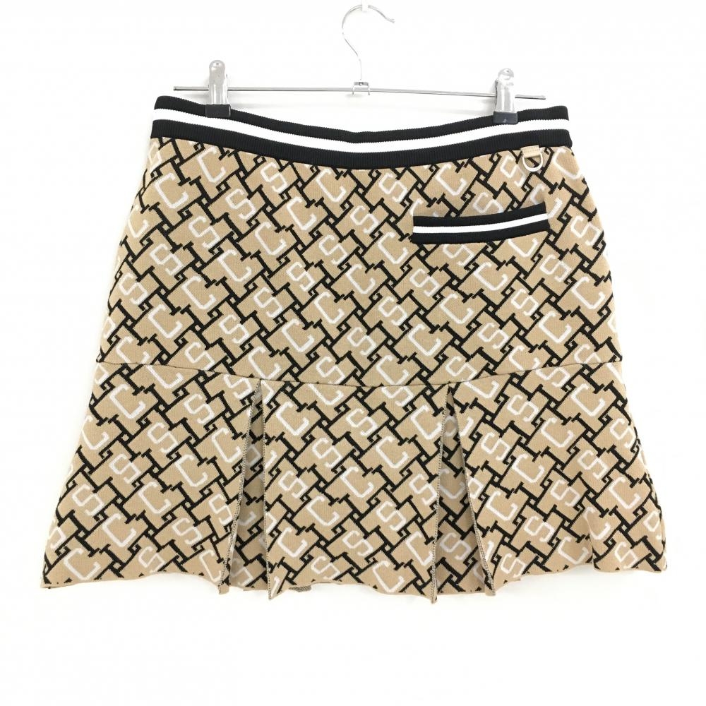 【超美品】ルコックゴルフ ニットスカート ベージュ×黒×白 総柄 レディース LL ゴルフウェア 2024年モデル le coq sportif