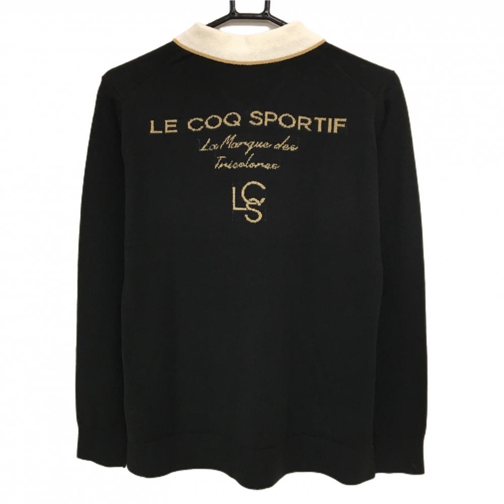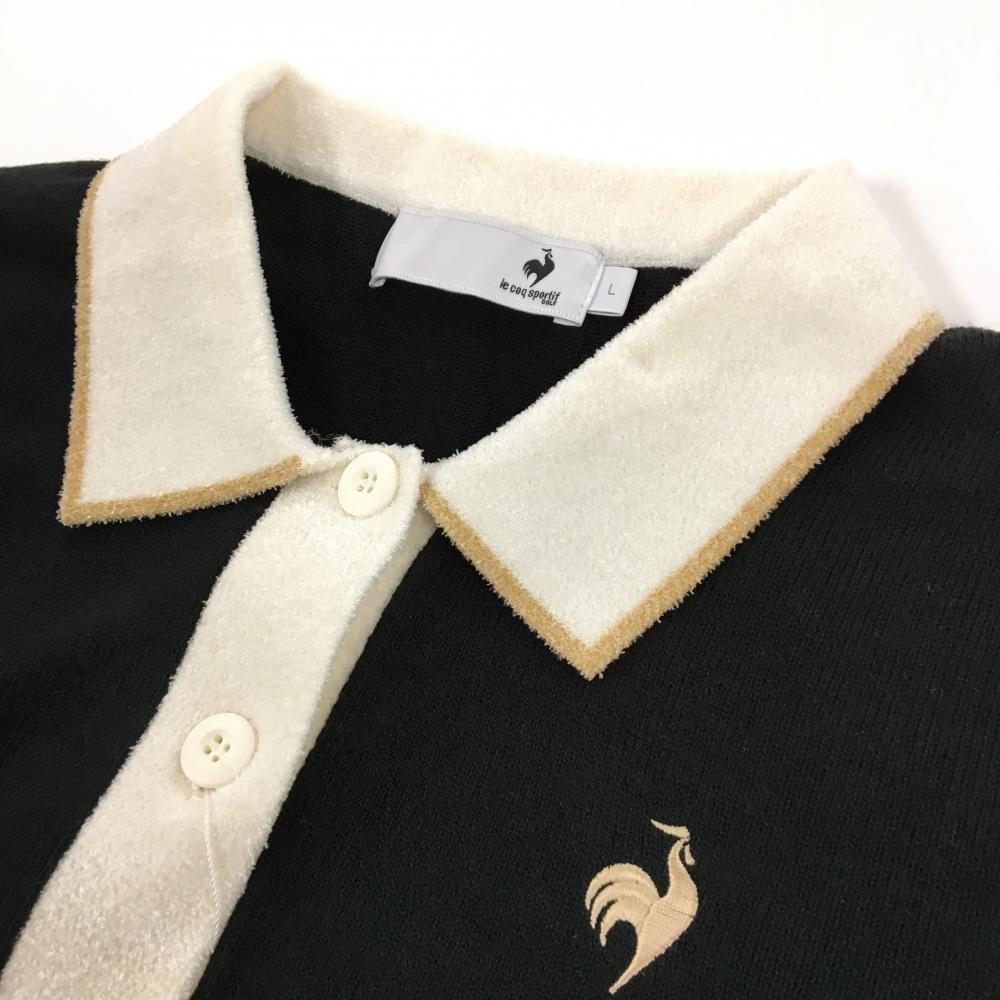 【新品】ルコックゴルフ 襟付きセーター 黒×白 ロゴゴールド レディース L ゴルフウェア 2024年モデル le coq sportif