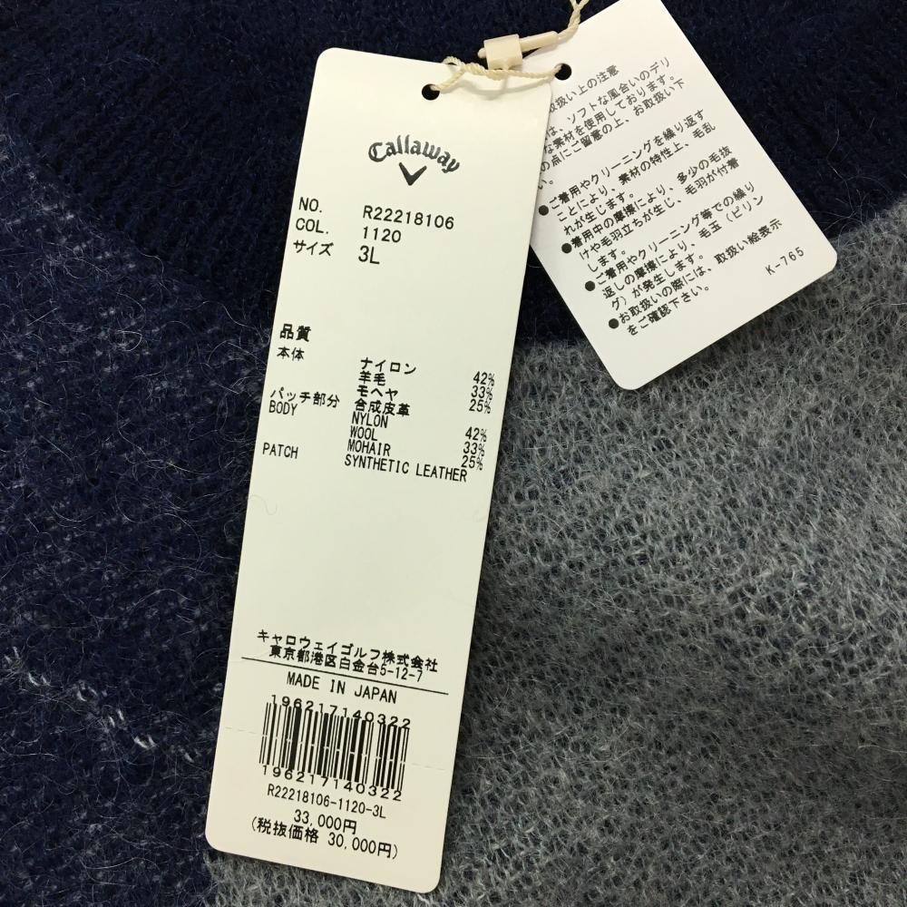 【新品】キャロウェイ レッドレーベル セーター ネイビー×グレー 袖アーガイル柄 モヘヤ混 メンズ 3L ゴルフウェア 大きいサイズ Callaway