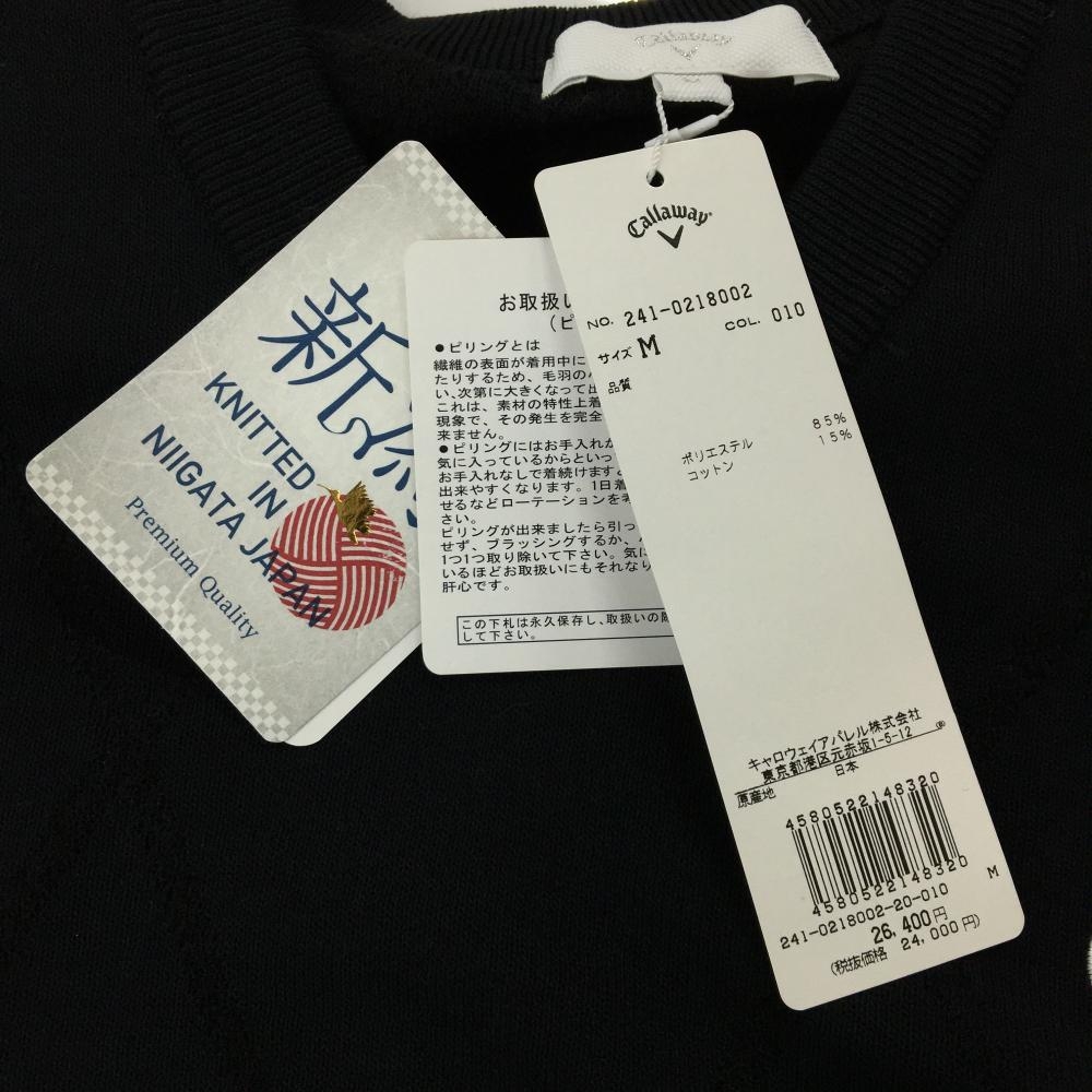 【新品】キャロウェイ セーター 黒 ダイヤ柄編み コットン混 Vネック ニット メンズ M ゴルフウェア Callaway