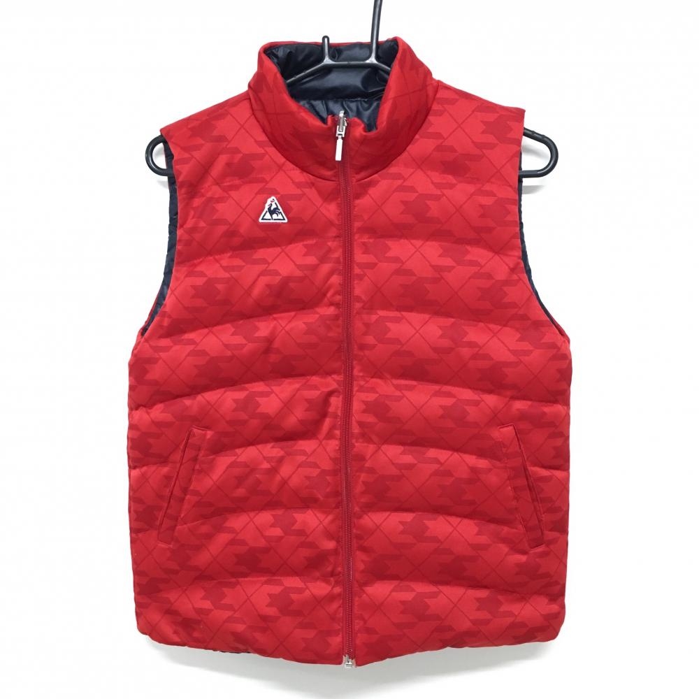 ルコック リバーシブルダウンベスト ネイビー×レッド キルティング調 裏千鳥格子風地模様 レディース L ゴルフウェア le coq sportif