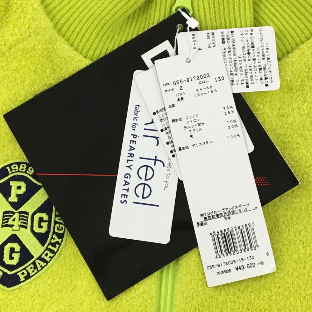 【新品】パーリーゲイツ ニットジャケット イエロー×ネイビー パイル地風 裏地付 DiAPLEX メンズ 2(L) ゴルフウェア PEARLY GATES