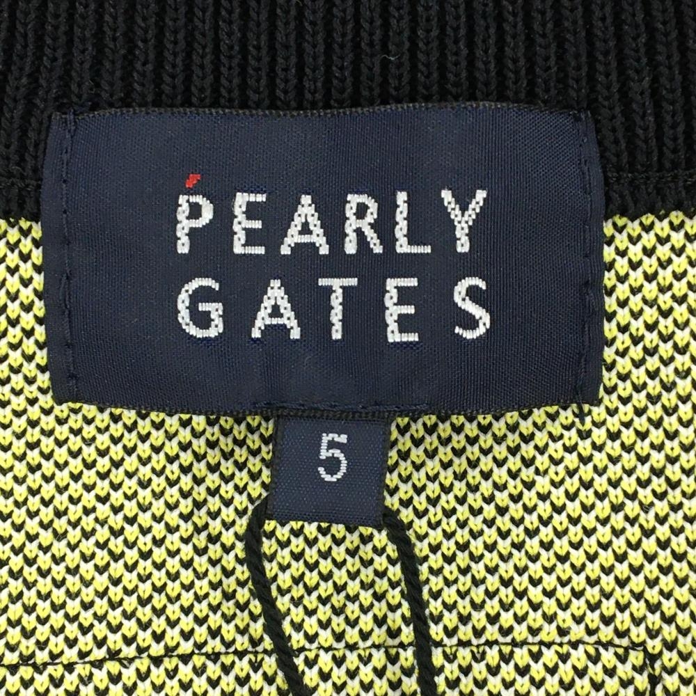 【新品】パーリーゲイツ セーター 黒×白×イエロー 腹部・袖ロゴ コットン混 メンズ 5(L) ゴルフウェア 2025年モデル PEARLY GATES