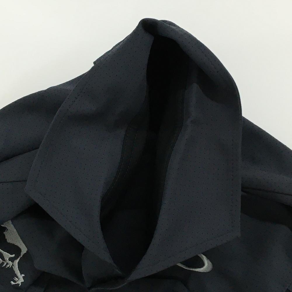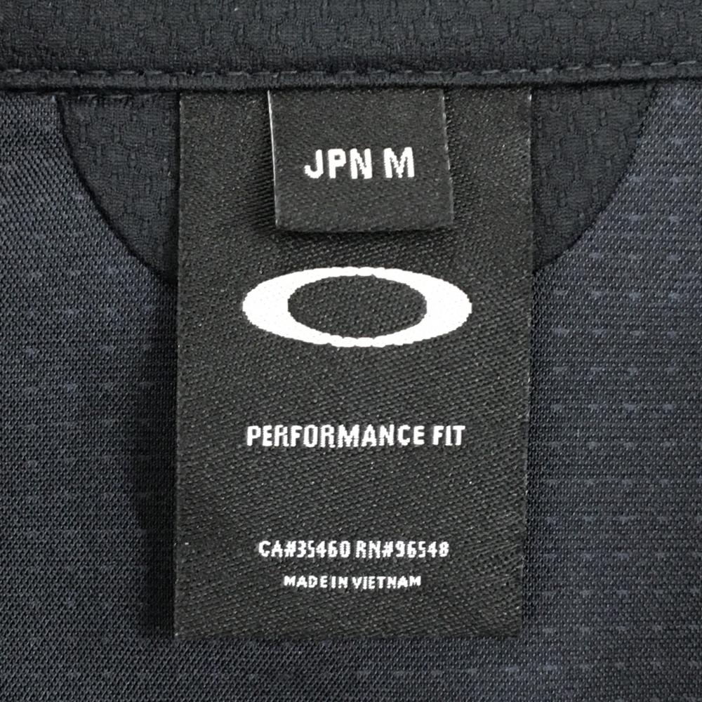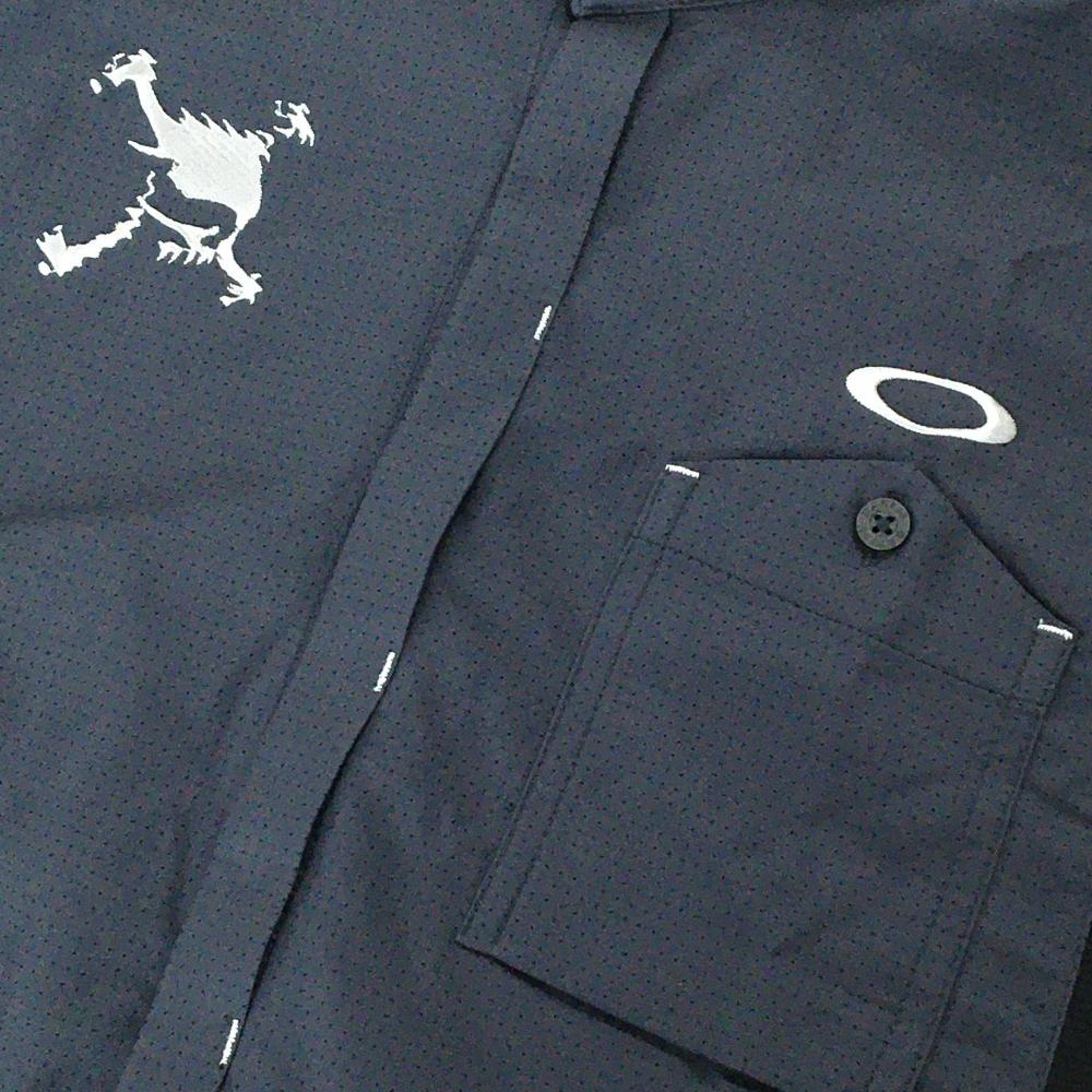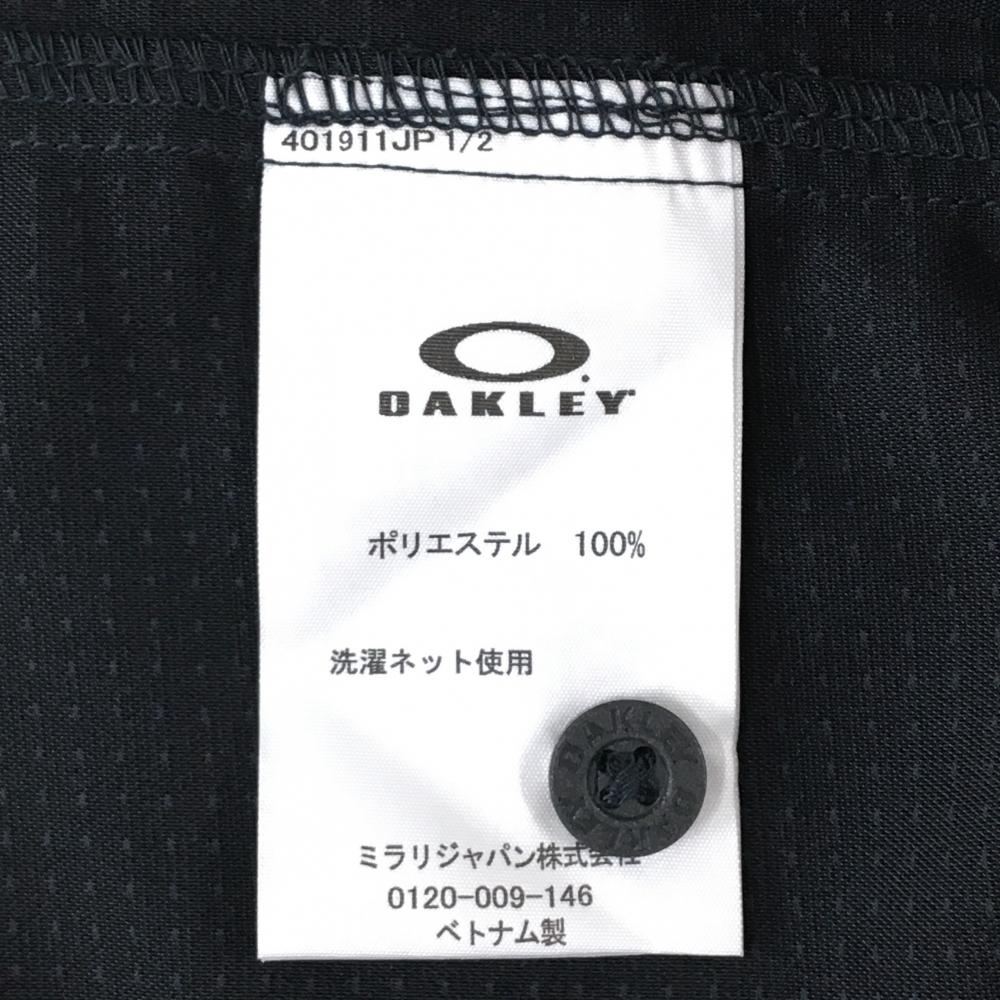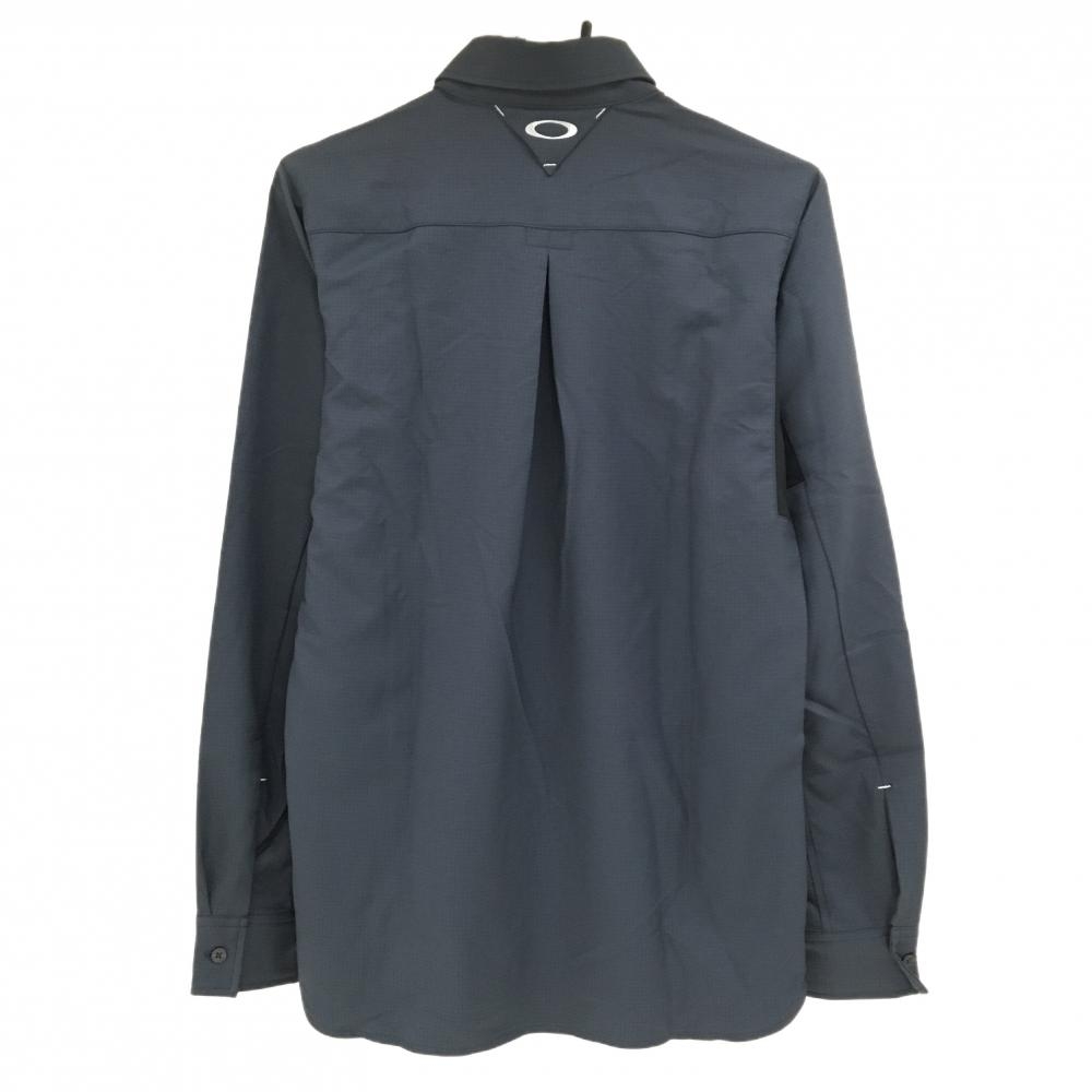 【美品】オークリー 長袖シャツ ダークグレー×黒 ピンドット ロゴ刺しゅう 胸ポケット メンズ M ゴルフウェア Oakley