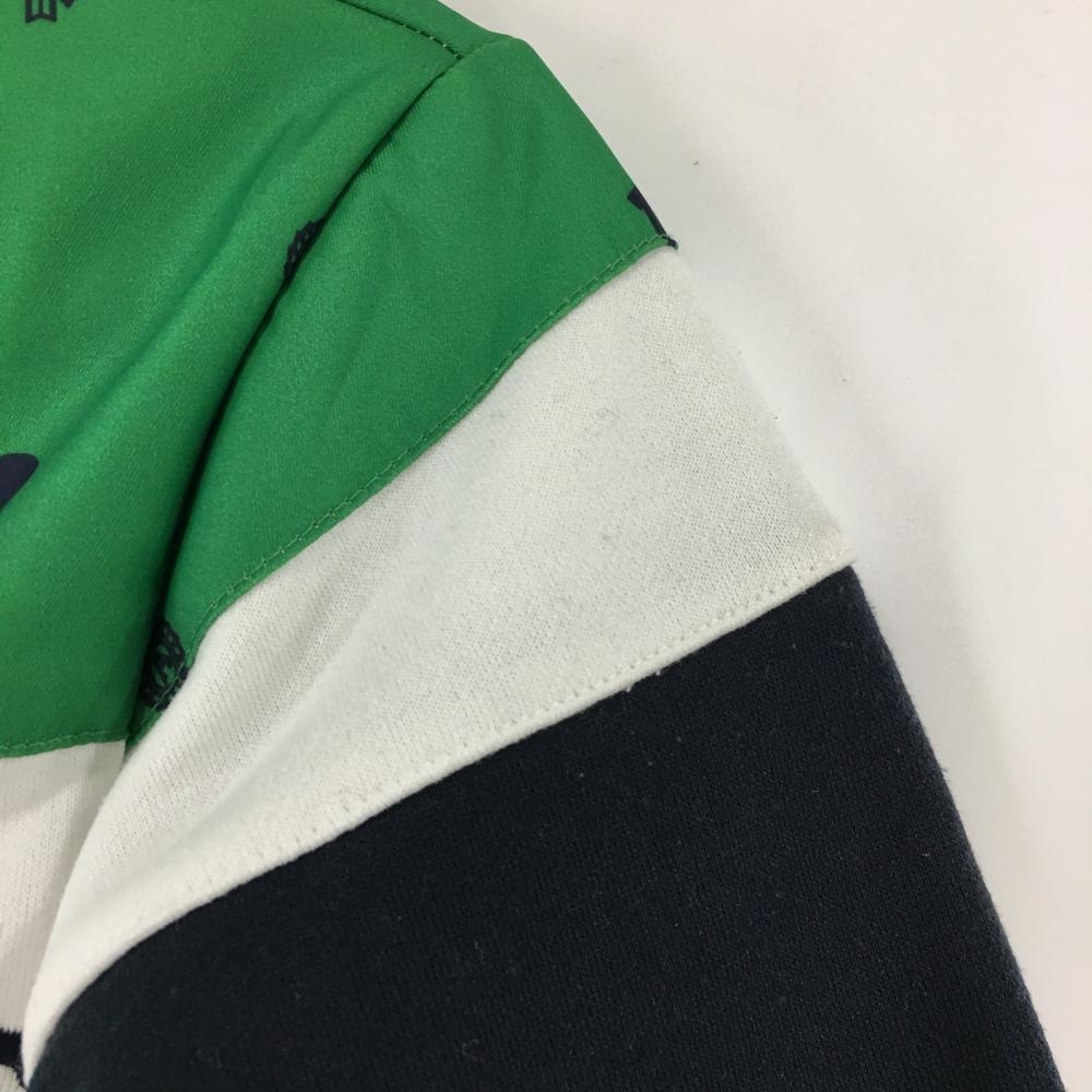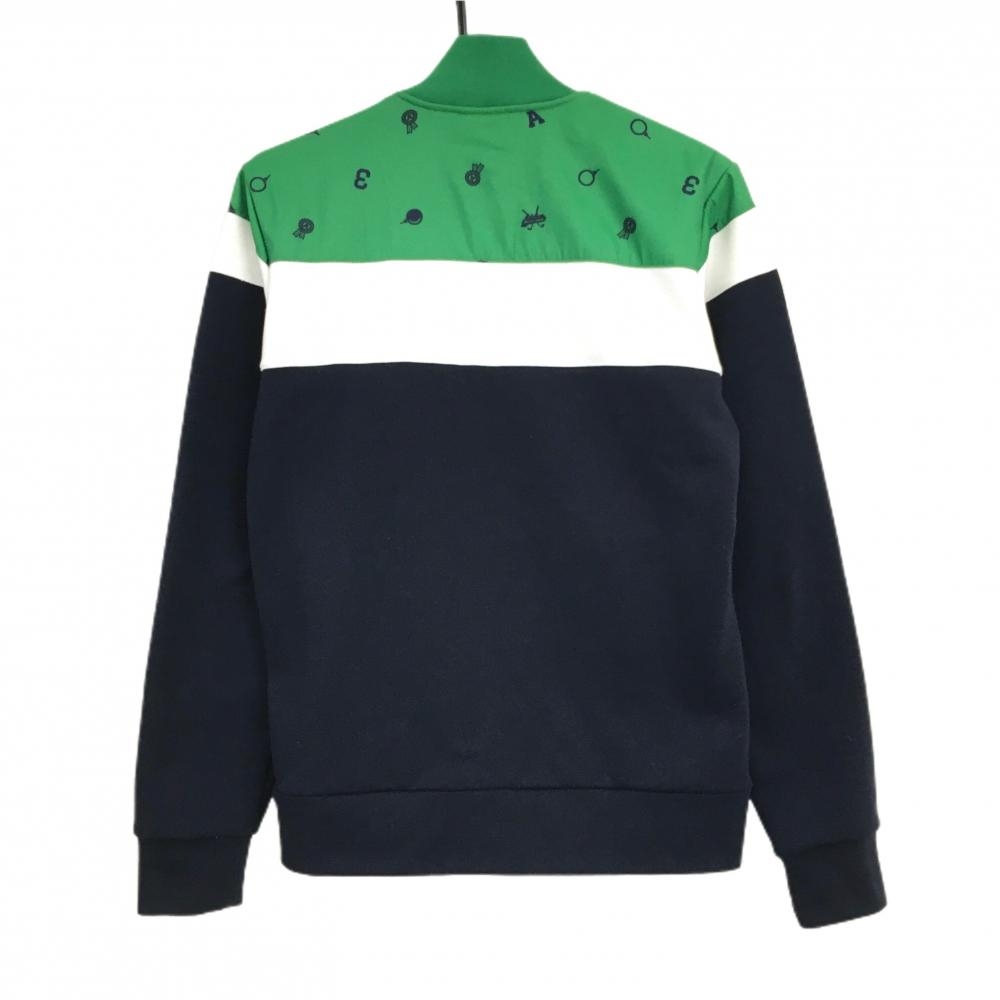【美品】アディダス ジャケットブルゾン グリーン×ネイビー 上部柄 裏微起毛 ロゴ刺しゅう メンズ S/P ゴルフウェア adidas