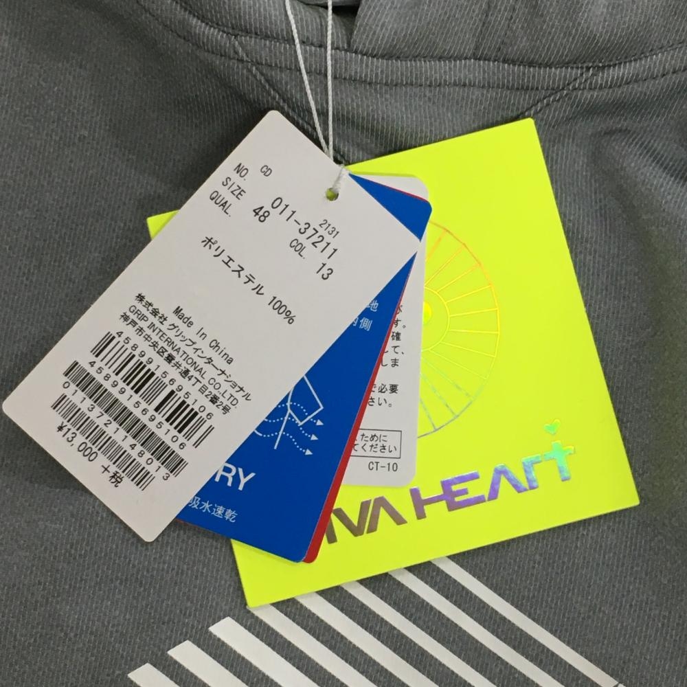 【新品】ビバハート フード付長袖Tシャツ グレー×白 フロントロゴ 袖2ライン メンズ 48(M) ゴルフウェア VIVA HEART