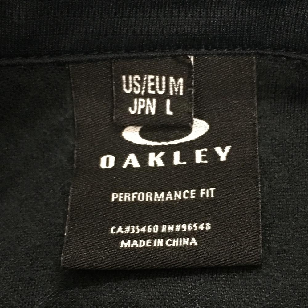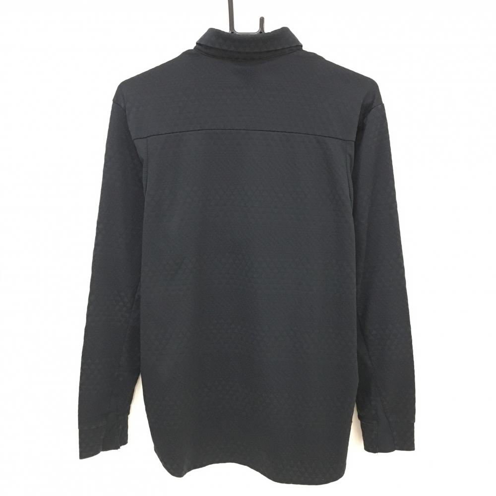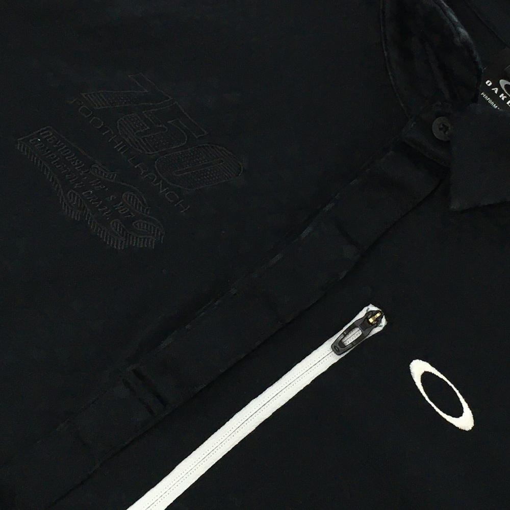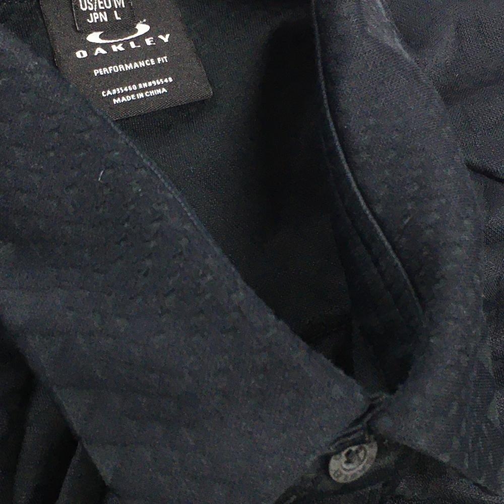 オークリー 長袖ポロシャツ 黒 地模様 ロゴ白 メンズ L ゴルフウェア Oakley