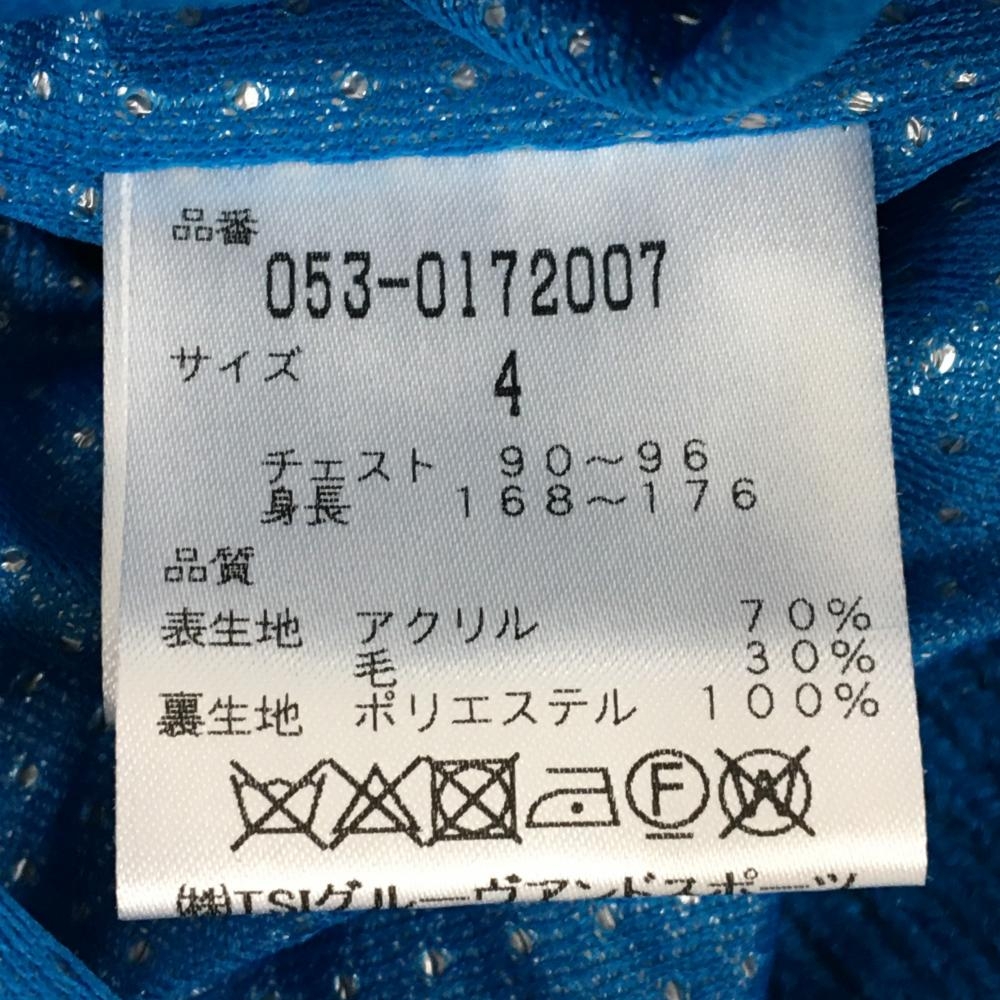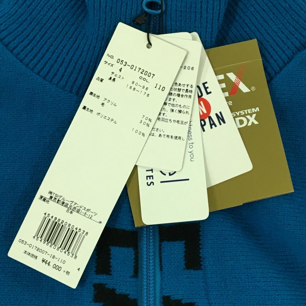 【新品】パーリーゲイツ ニットジャケット ターコイズブルー×黒 ジップ部ロゴ DiAPLEX メンズ 4(M) ゴルフウェア PEARLY GATES