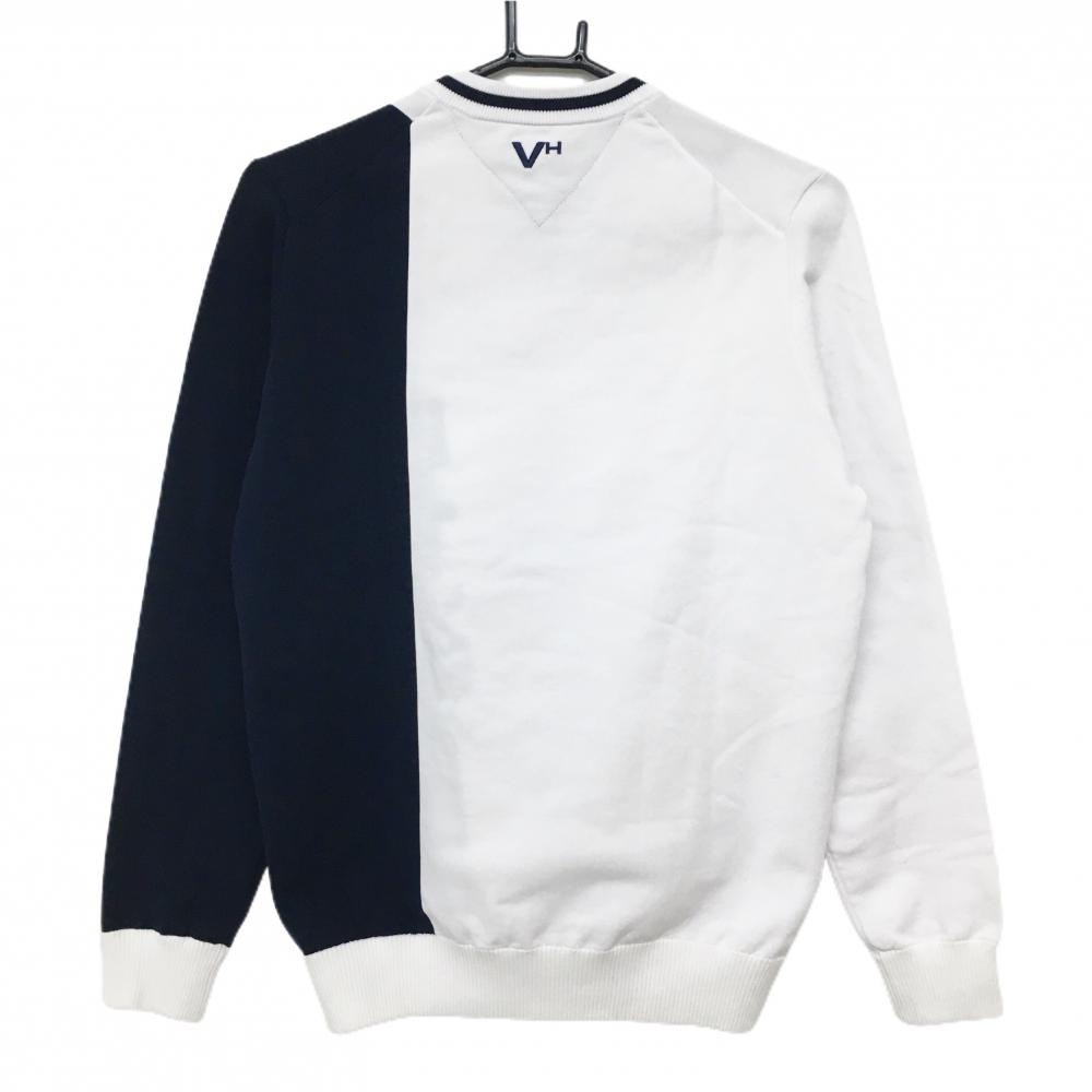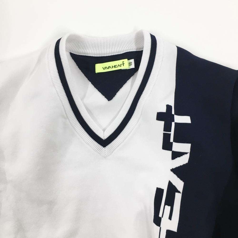 【美品】ビバハート セーター 白×黒 フロントロゴ ポリエステル100% ニット メンズ 48(M) ゴルフウェア VIVA HEART