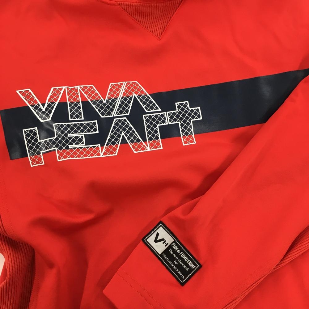 【超美品】ビバハート パーカー レッド×ネイビー 裏微起毛 ロゴプリント 袖下・サイドリブ切替 メンズ 48(M) ゴルフウェア VIVA HEART