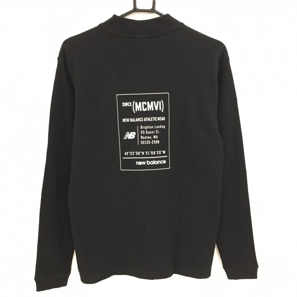 【美品】ニューバランス 長袖ハイネックシャツ 黒 ワッフル生地 ロゴプリント メンズ S ゴルフウェア New Balance