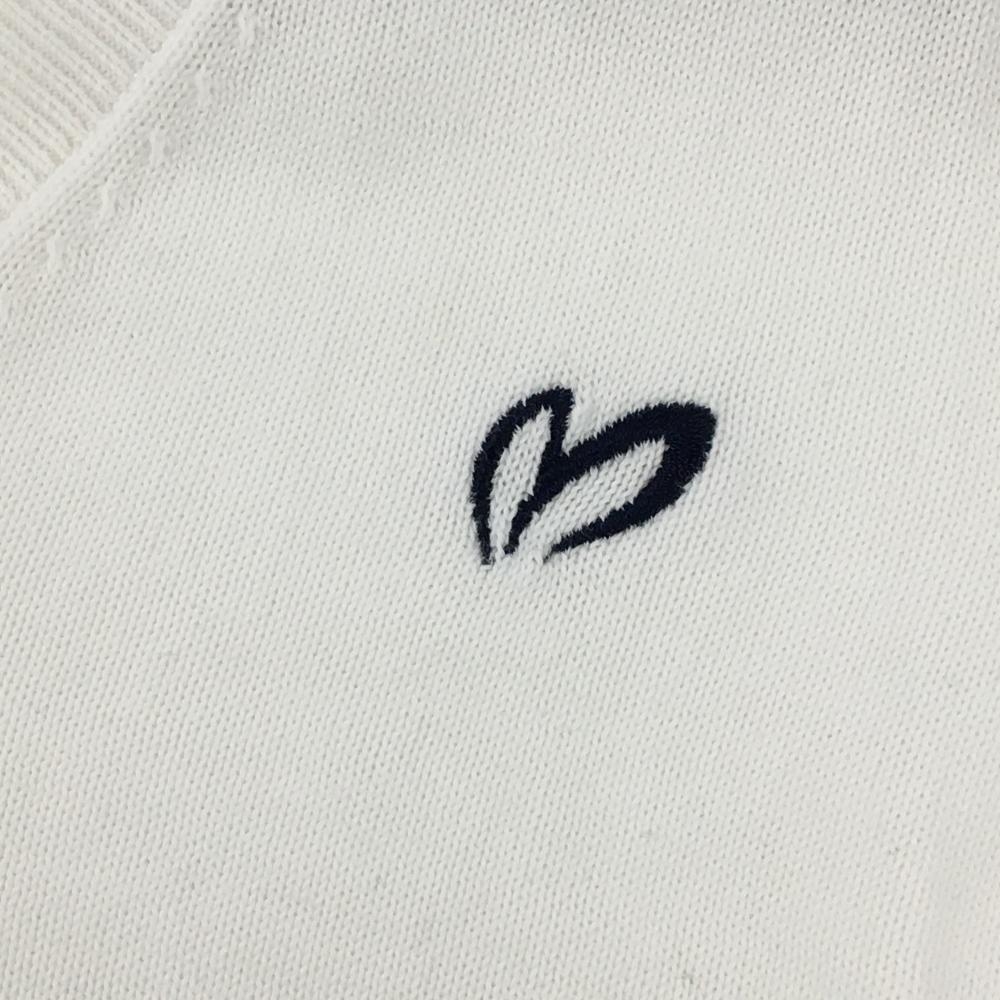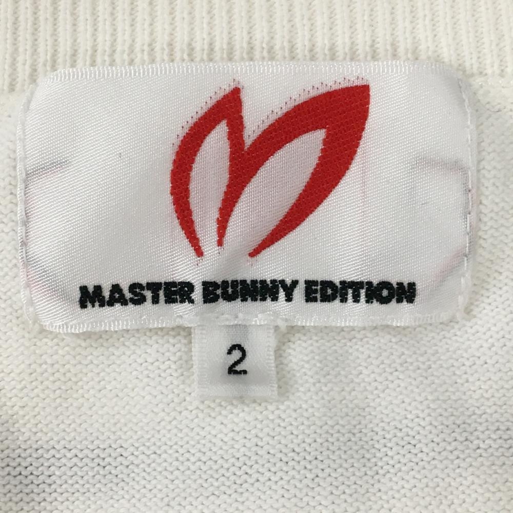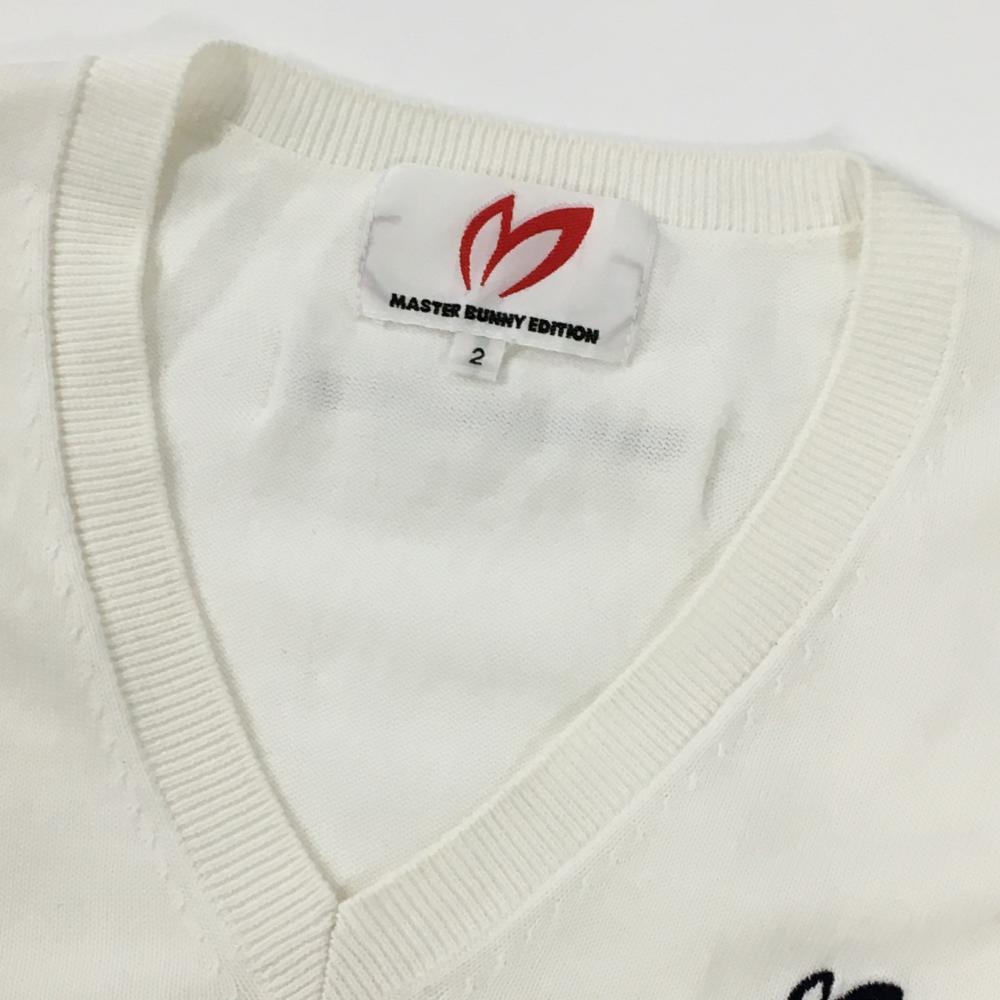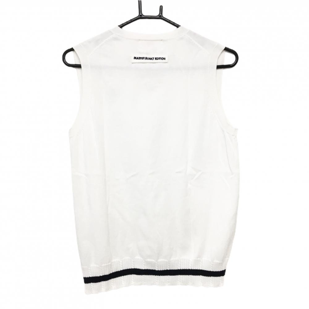 【美品】マスターバニー ニットベスト 白×ネイビー 裾ライン コットン100% Vネック レディース 2(L) ゴルフウェア MASTER BUNNY EDITION