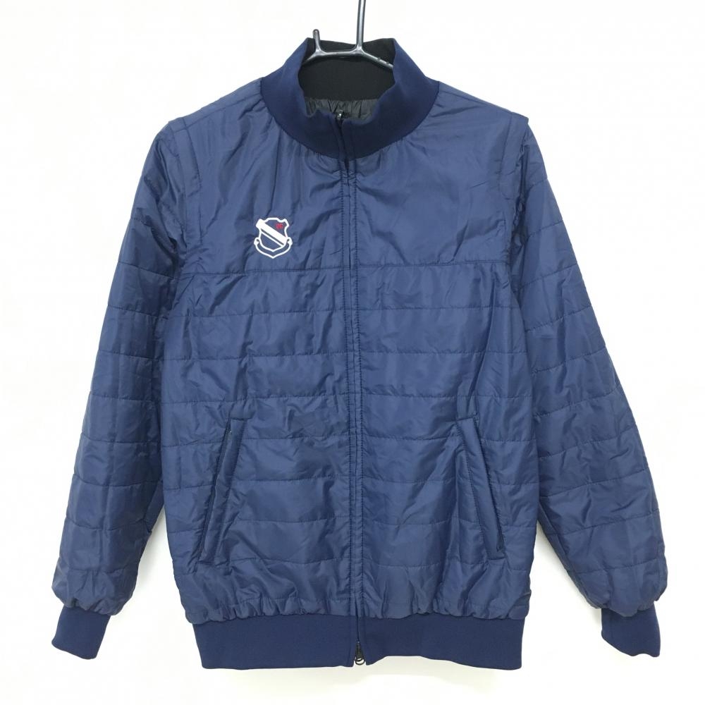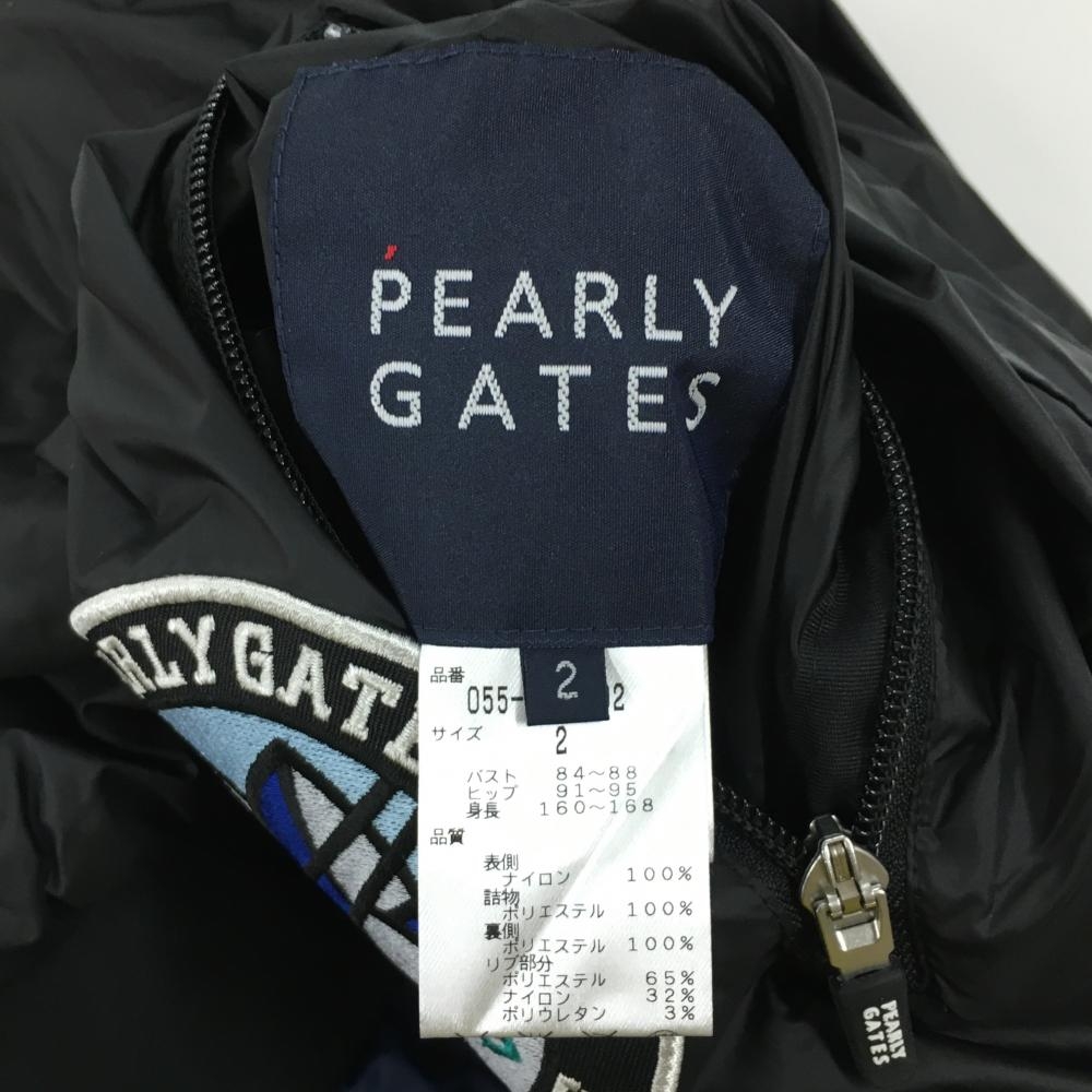 【超美品】パーリーゲイツ 4WAY中綿リバーシブルジャケット 黒 裏ネイビー 複数ワッペン レディース 2(L) ゴルフウェア PEARLY GATES