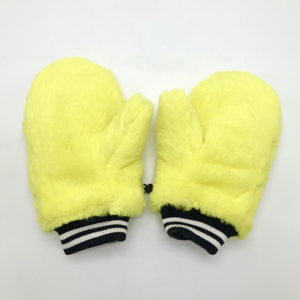 【超美品】パーリーゲイツ 手袋 イエロー×黒 ボア ミトングローブ レディース ゴルフウェア PEARLY GATES