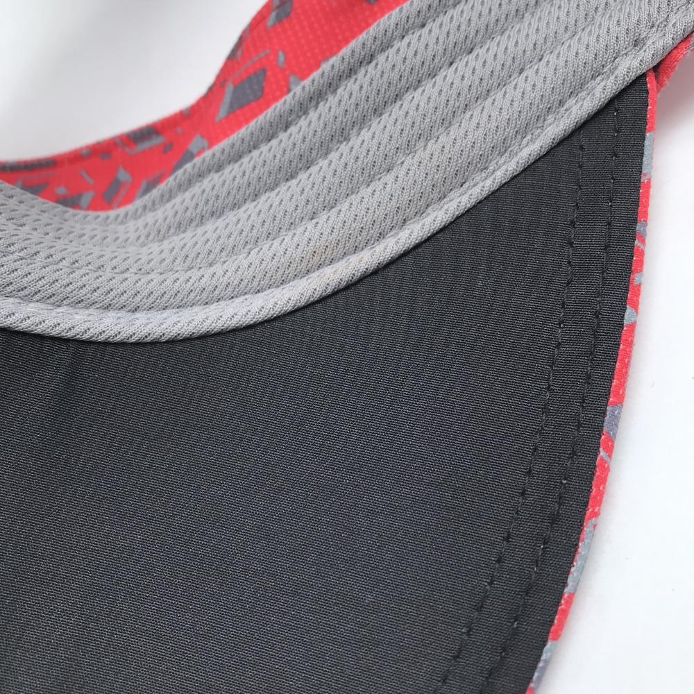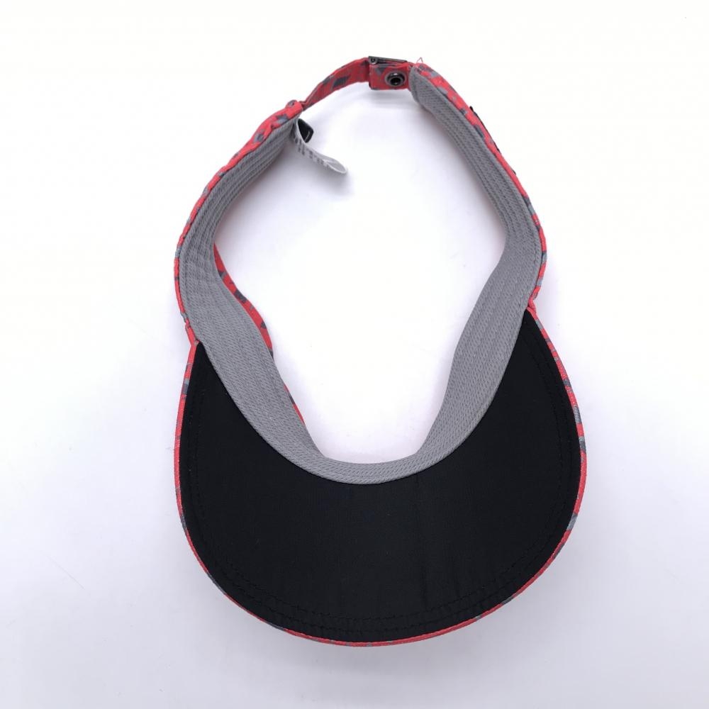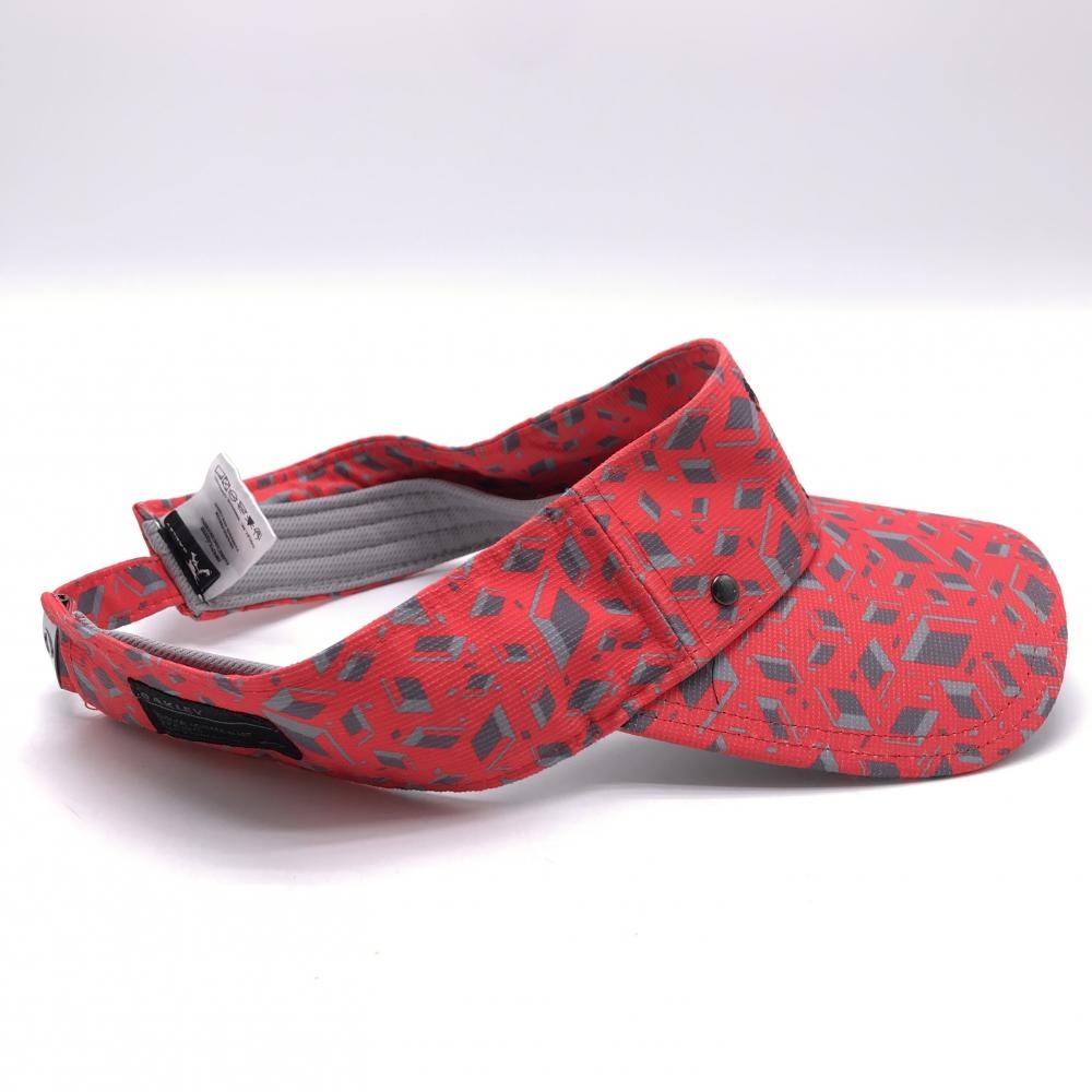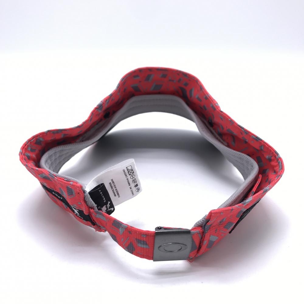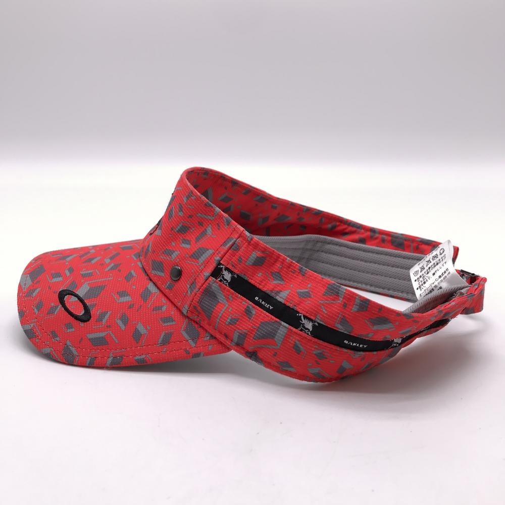 【美品】オークリー サンバイザー オレンジレッド×グレー 総柄 ロゴ刺しゅう ゴルフウェア Oakley