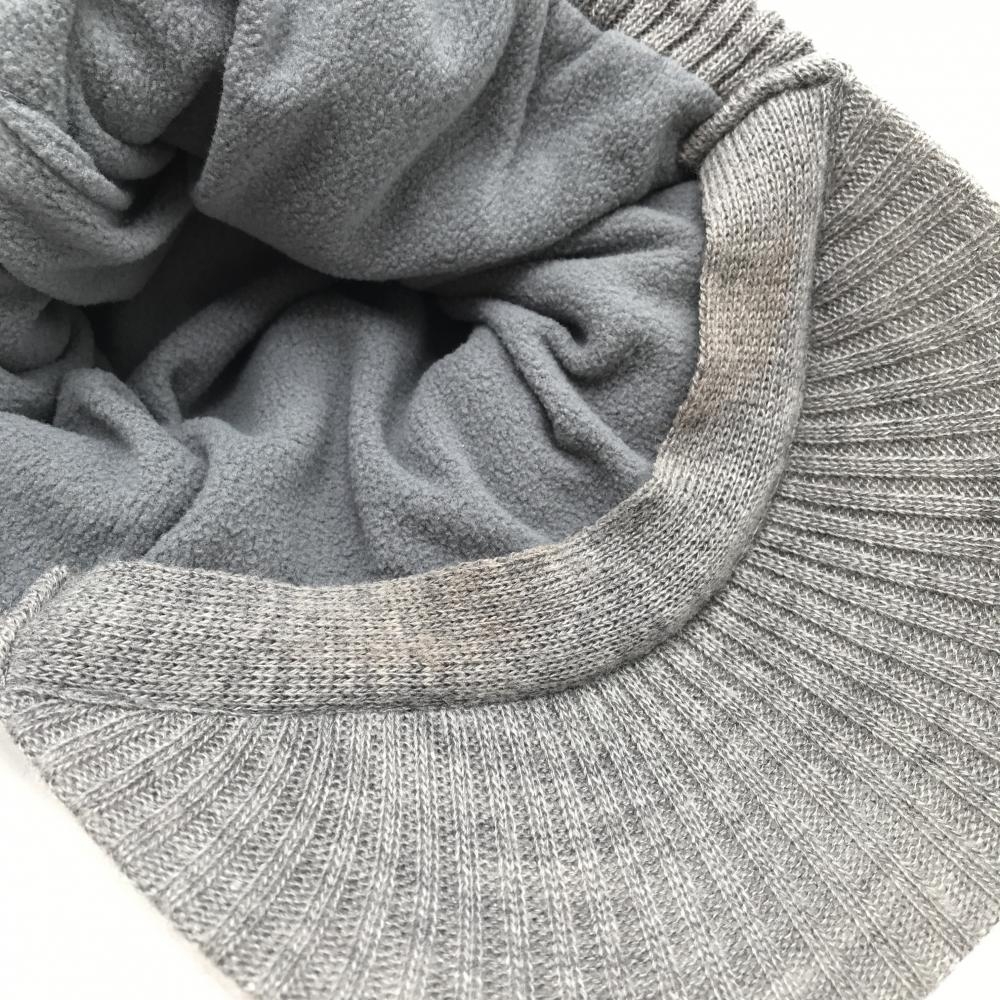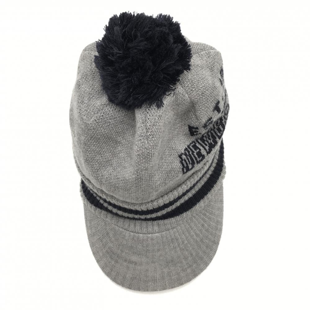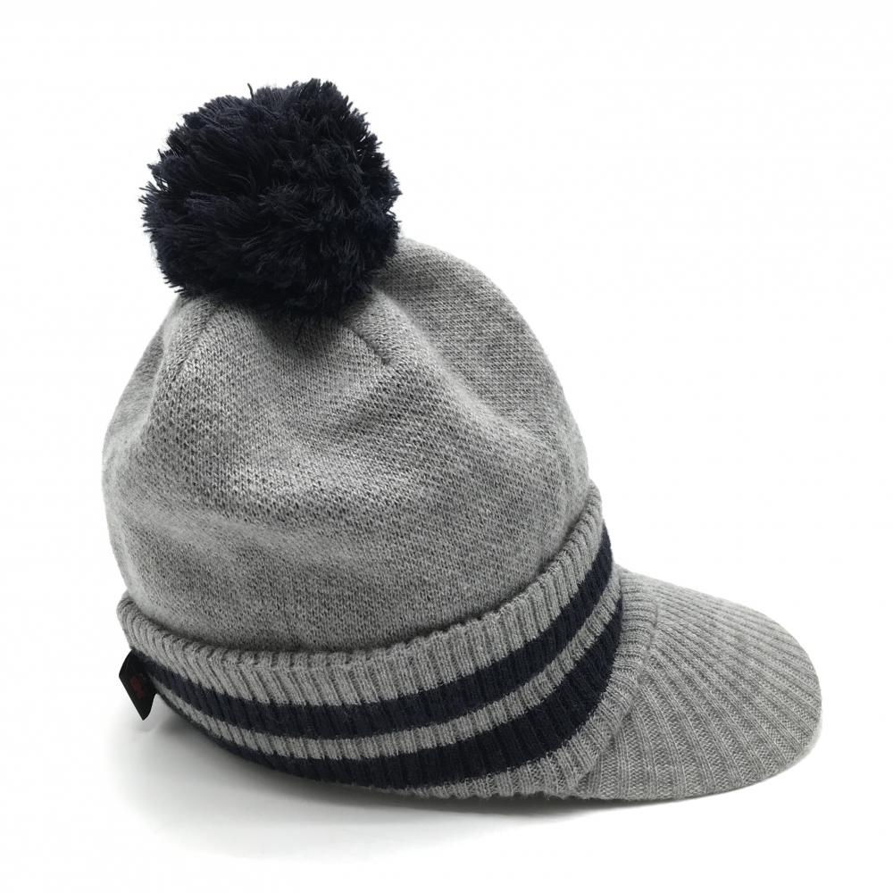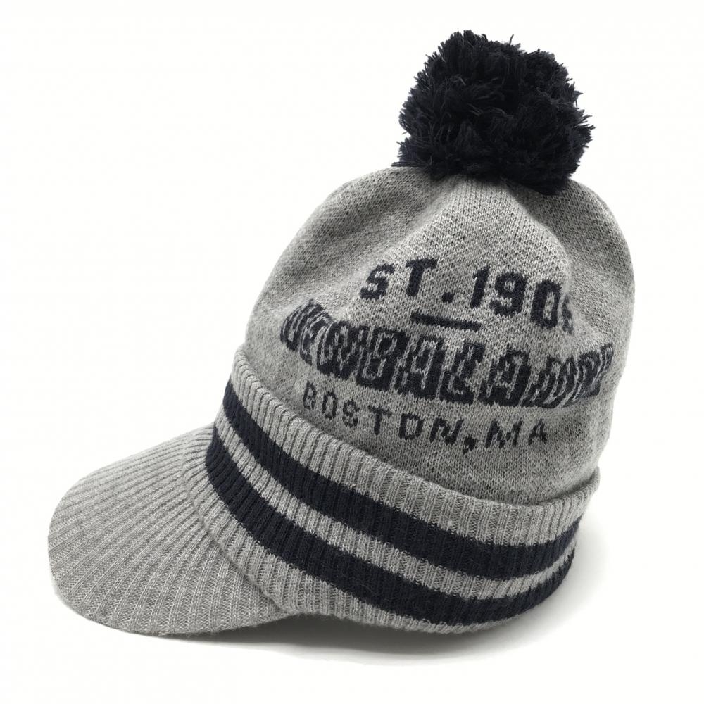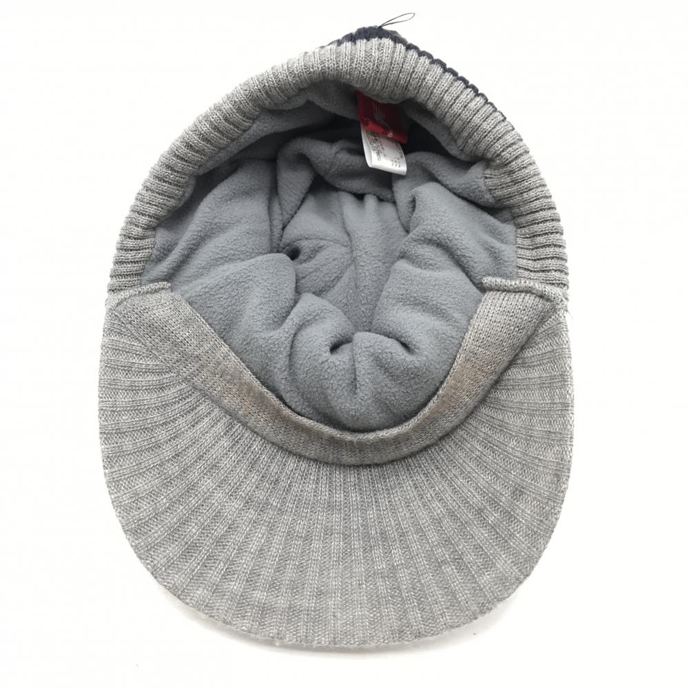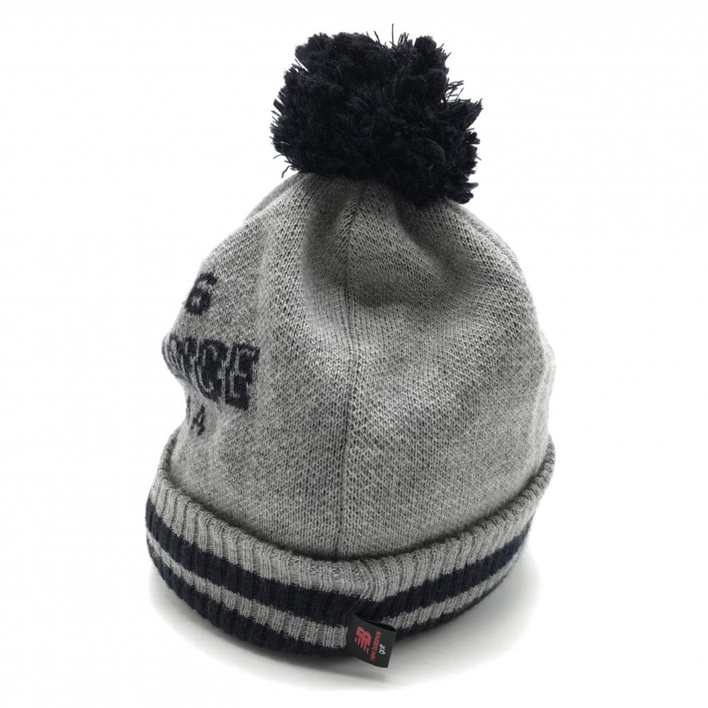 ニューバランスゴルフ つば付きニット帽 グレー×ネイビー ボンボン付き 裏フリース サイドロゴ FR ゴルフウェア New Balance