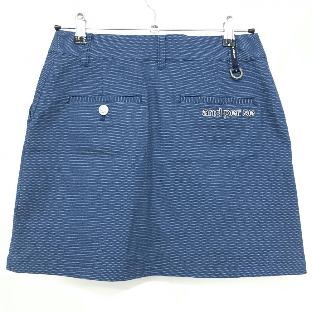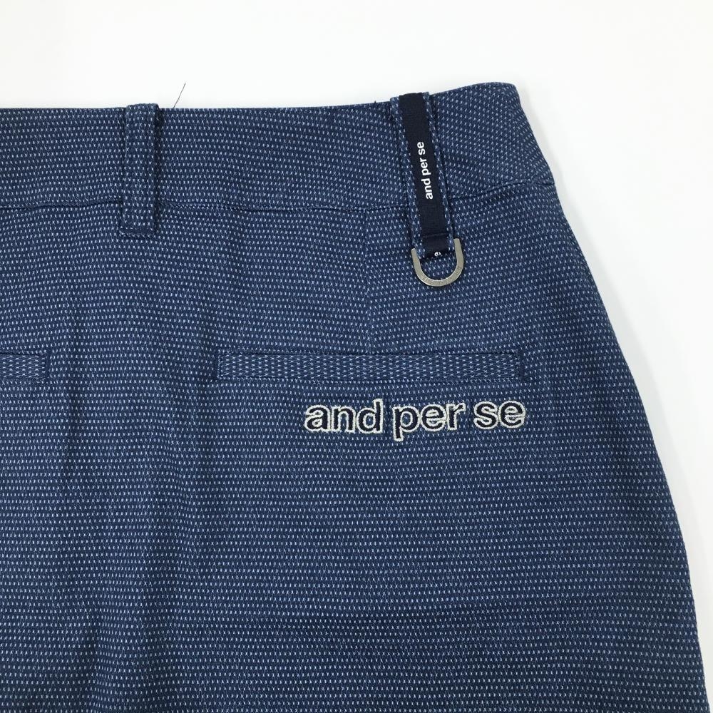 【美品】アンパスィ スカート ネイビー 地模様 ロゴ ラインストーン レディース M ゴルフウェア and per se