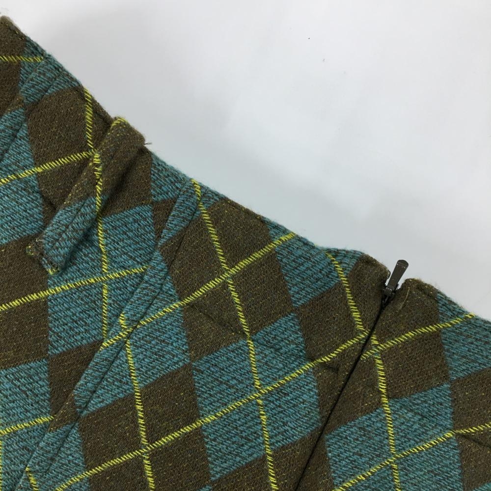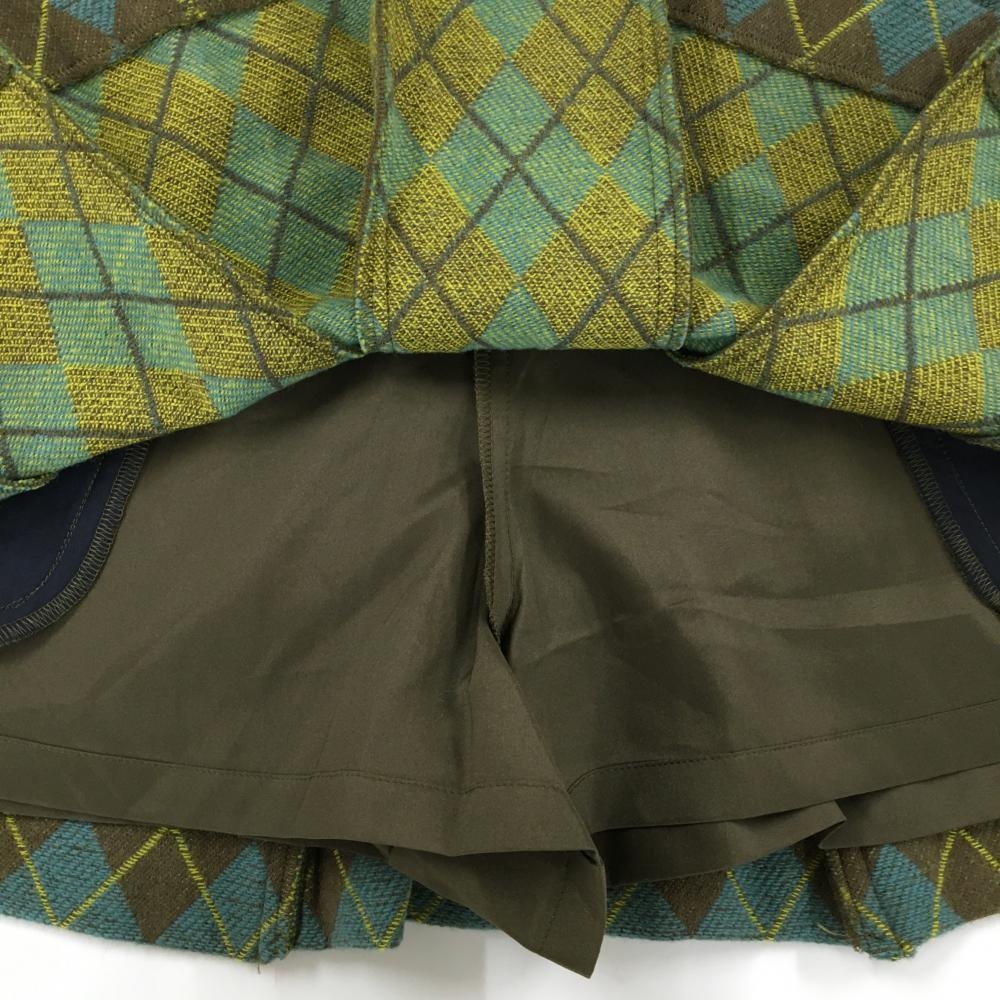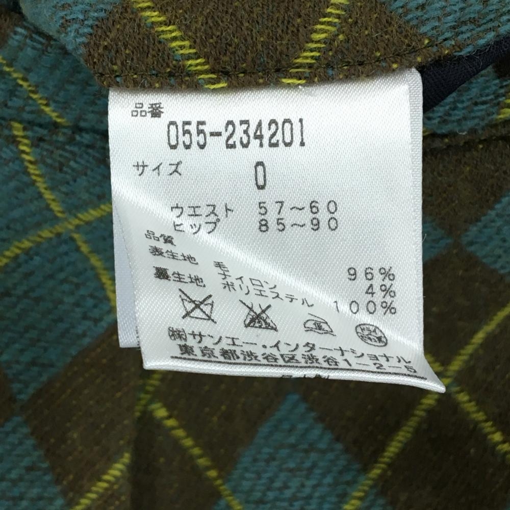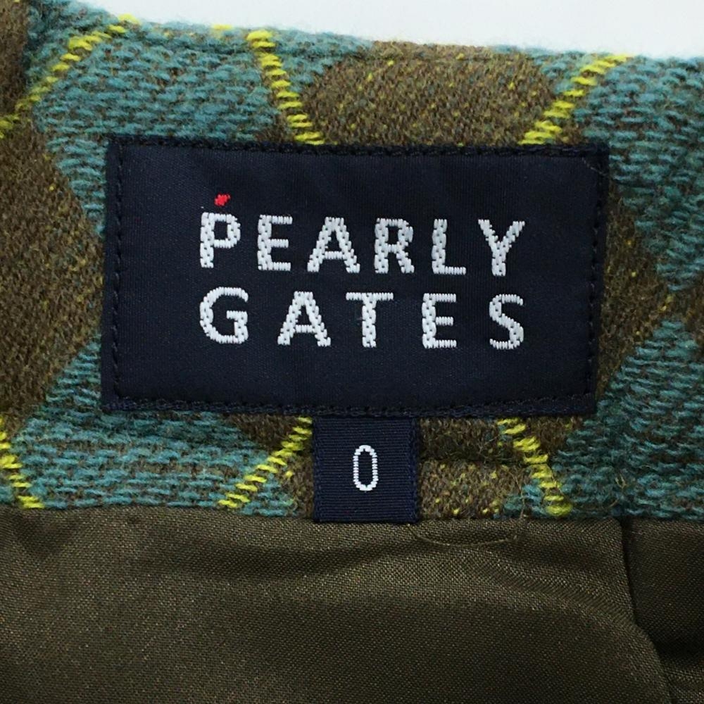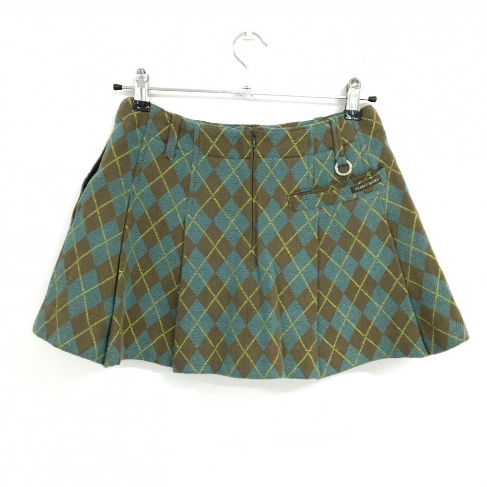 【美品】パーリーゲイツ プリーツスカート ライトブルー×ブラウン アーガイル柄 ウール混 レディース 0(S) ゴルフウェア PEARLY GATES