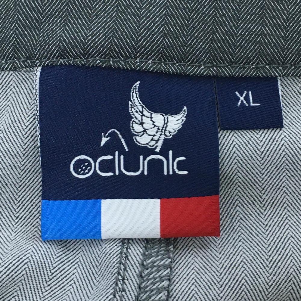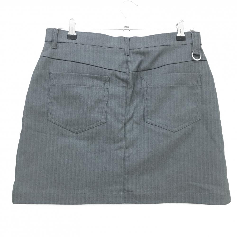 【超美品】クランク スカート グレー ストライプ地模様 ロゴ刺しゅう ストレッチ レディース XL ゴルフウェア CLUNK