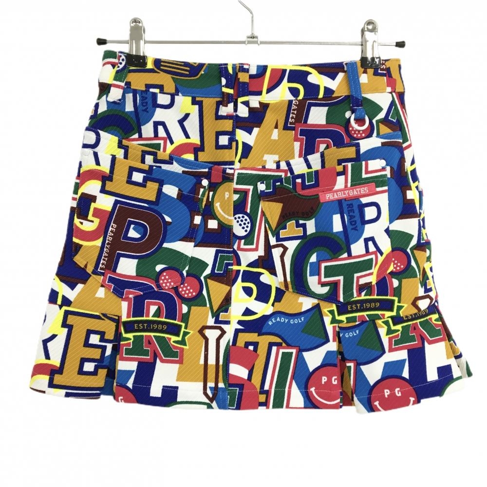 【美品】パーリーゲイツ スカート 白×マルチカラー 英字総柄 ニコちゃん レディース 00(XS) ゴルフウェア 2024年モデル PEARLY GATES