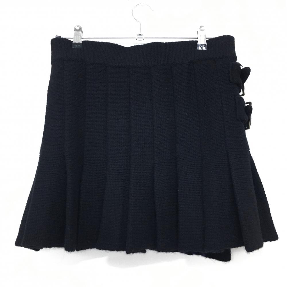 【美品】パーリーゲイツ 巻きニットスカート 黒×パープル 後裾プリーツ レディース 1(M) ゴルフウェア PEARLY GATES