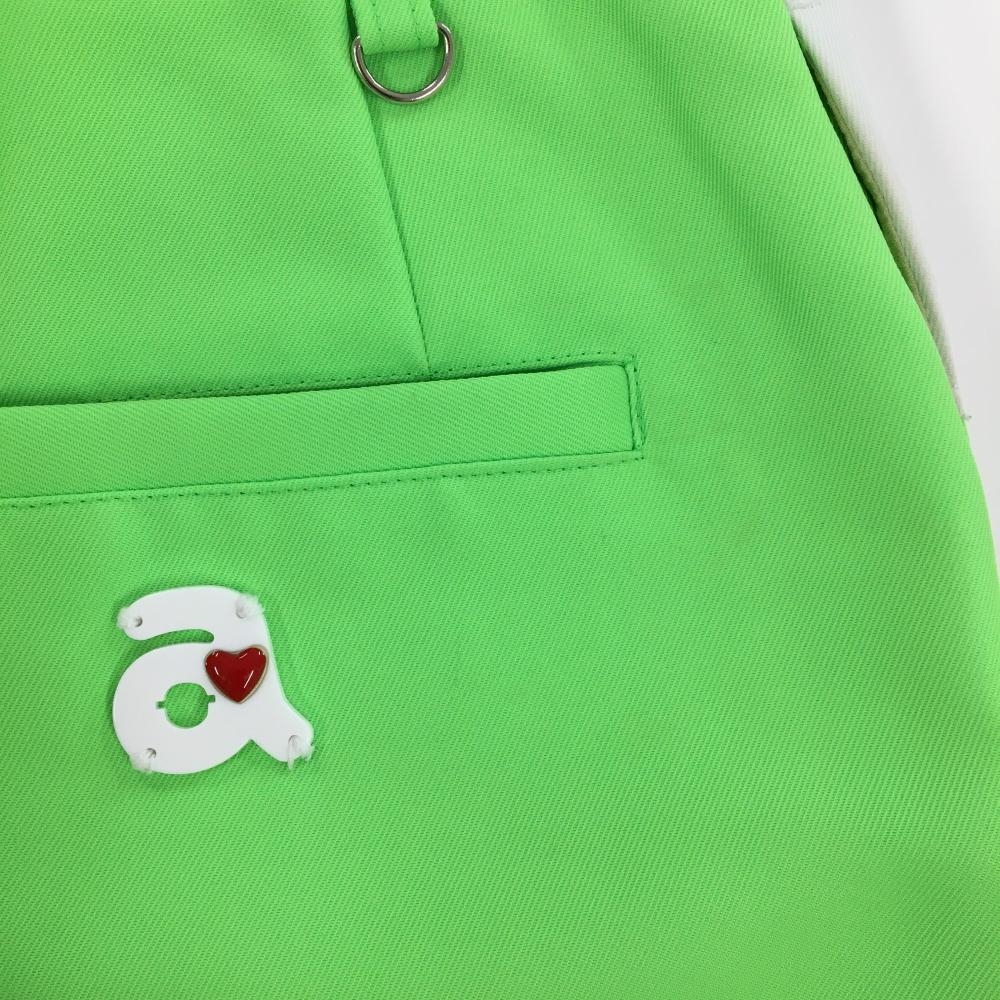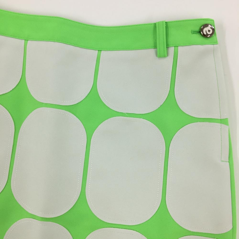 【美品】アルチビオ スカート 蛍光グリーン×白 前面オーバル総柄 裏地付 レディース 40(L) ゴルフウェア archivio