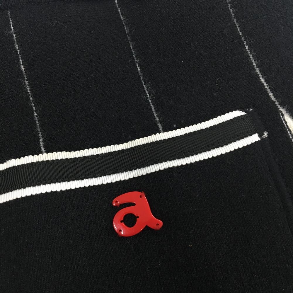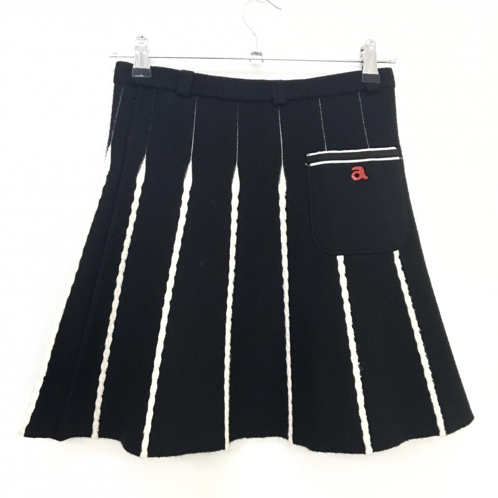 【美品】アルチビオ ニットスカート 黒×白 ケーブル編みライン ウール混 ストレッチ レディース 36(S) ゴルフウェア archivio