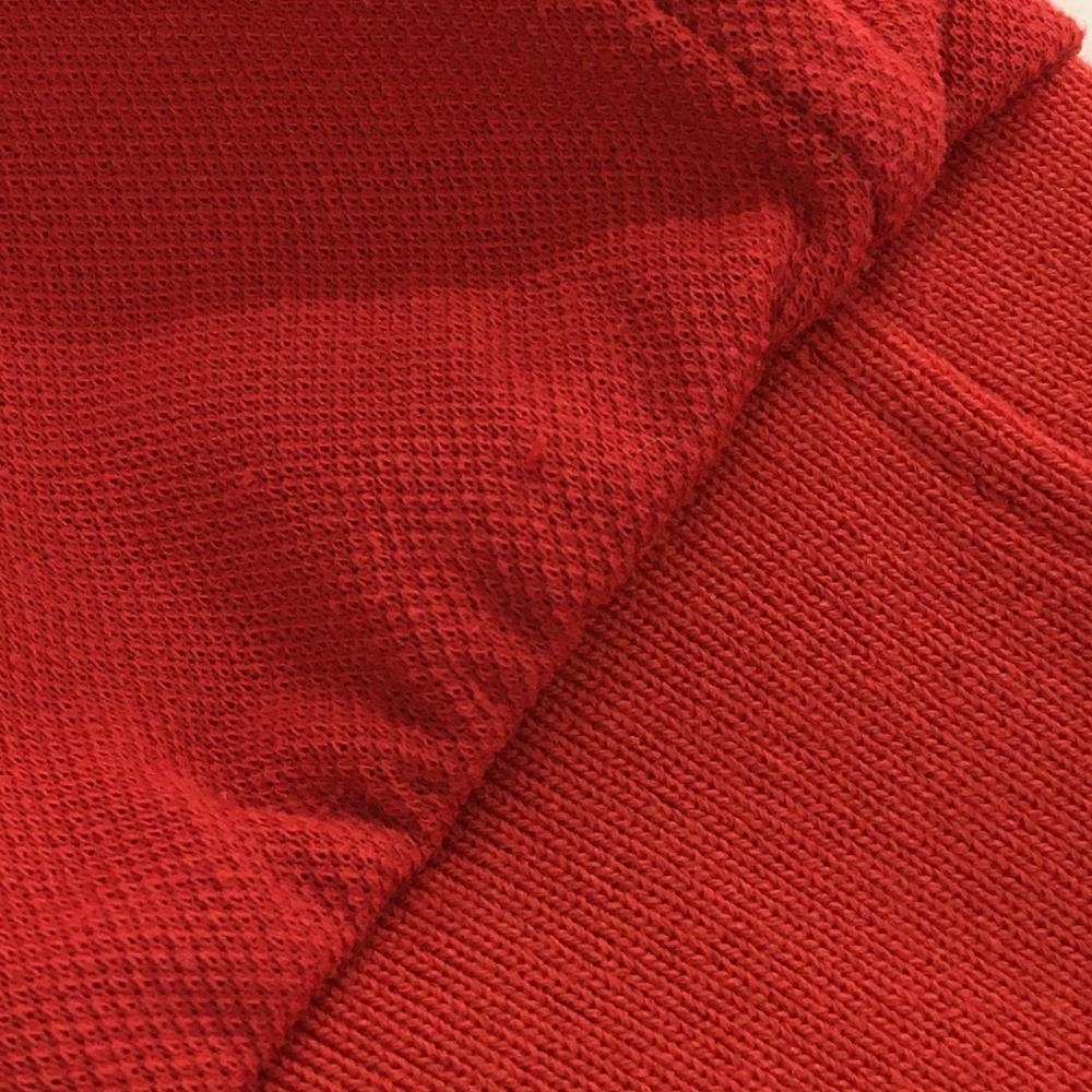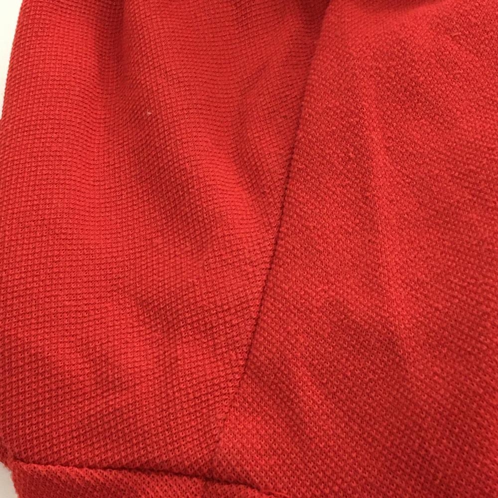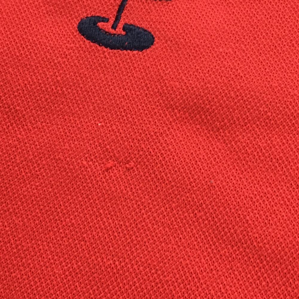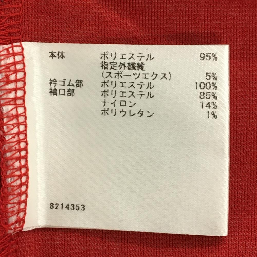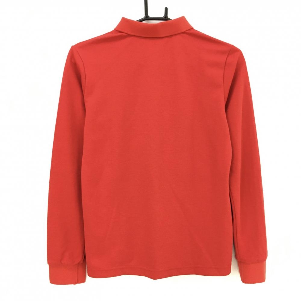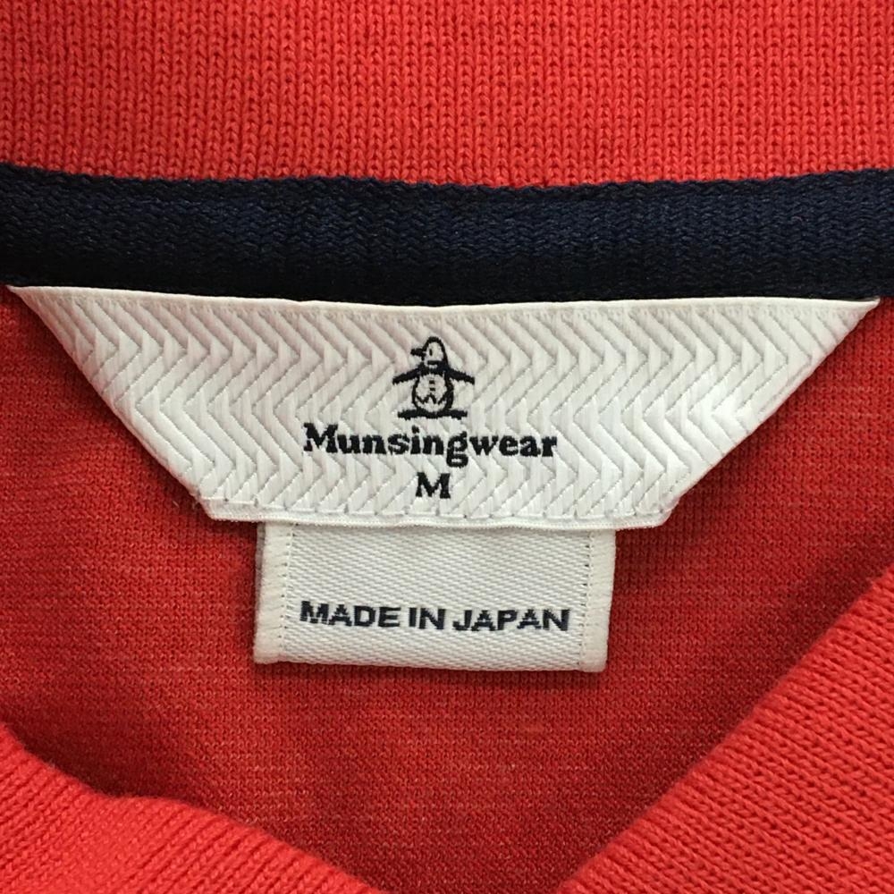【美品】マンシングウェア 長袖ポロシャツ レッド×白×ネイビー 前身頃総柄刺しゅう レディース M ゴルフウェア Munsingwear