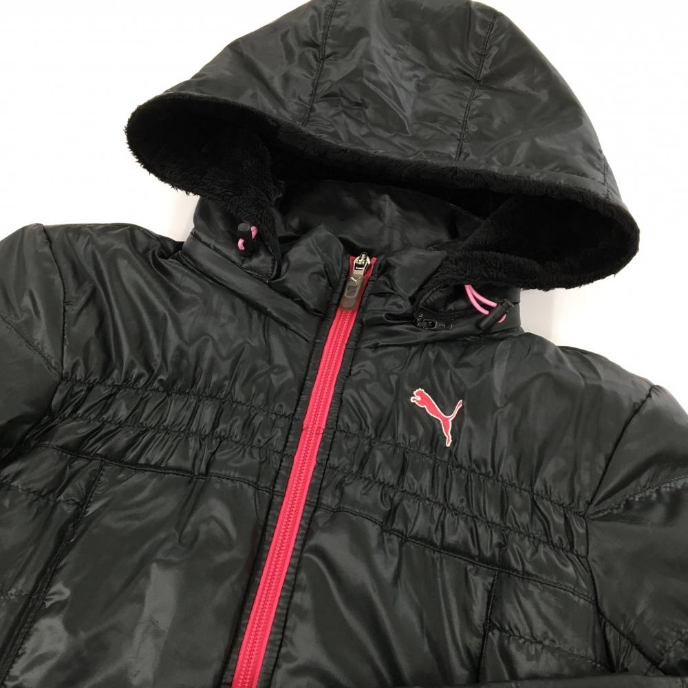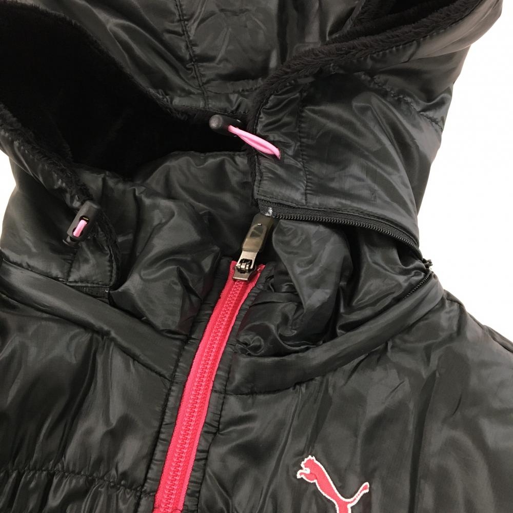 プーマ 中綿ジャケット 黒×ピンク フード内側・ポケット内側ボア ダブルジップ フード着脱可 レディース M ゴルフウェア PUMA
