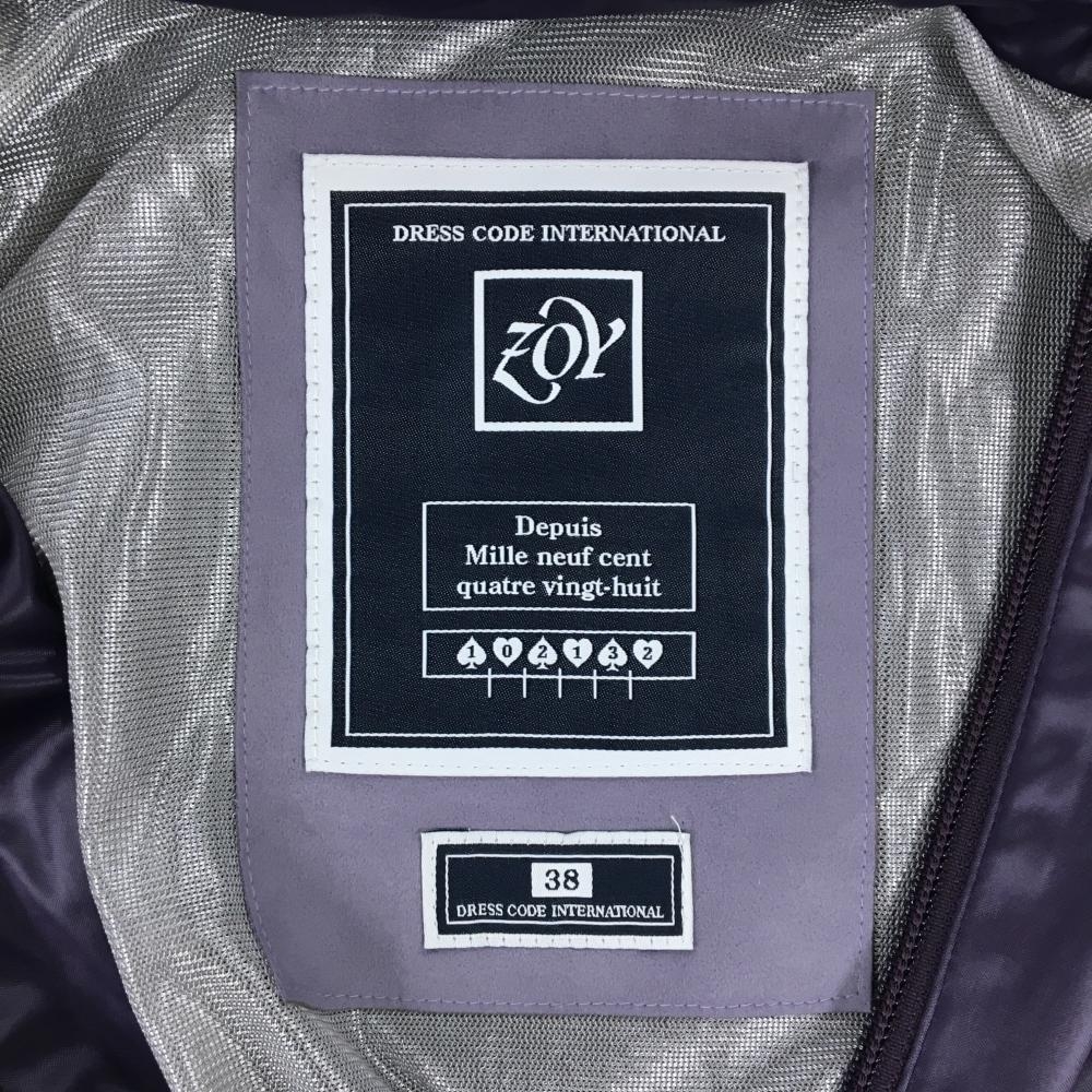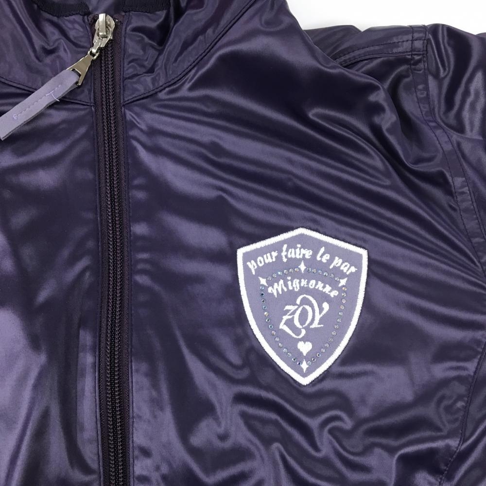 ゾーイ ジャケット パープル 光沢生地 ワッペン ダブルジップ 裏地付 レディース 38(M) ゴルフウェア ZOY