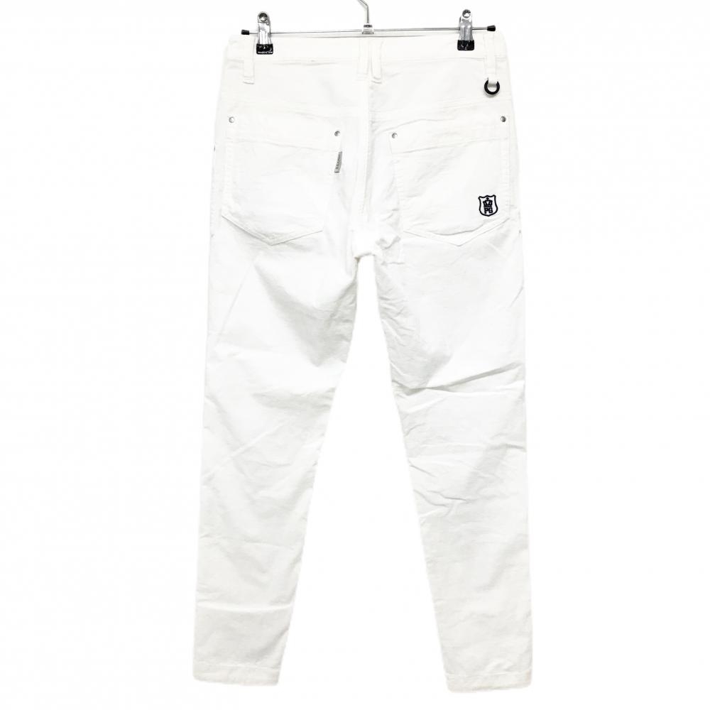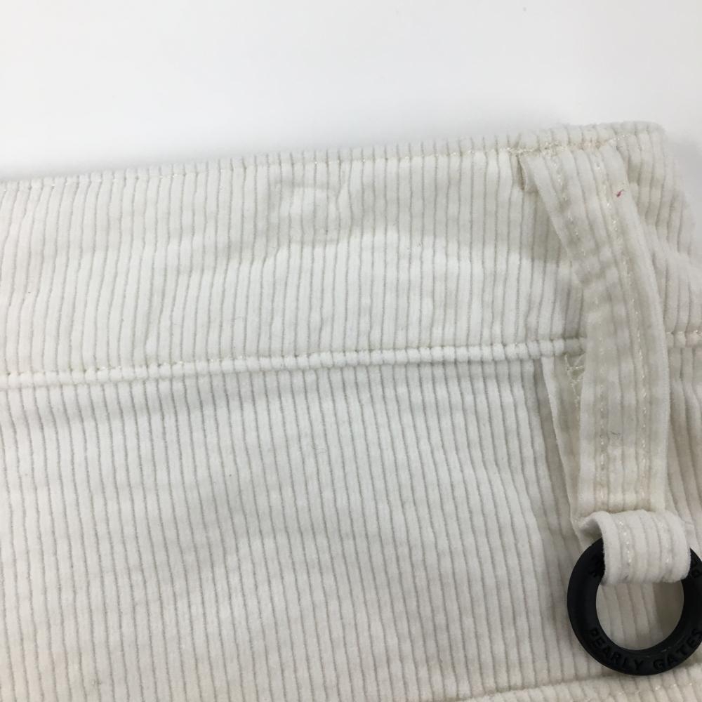 【美品】パーリーゲイツ コーデュロイパンツ 白 ロゴネイビー ティー装着可 レディース 0(S) ゴルフウェア PEARLY GATES