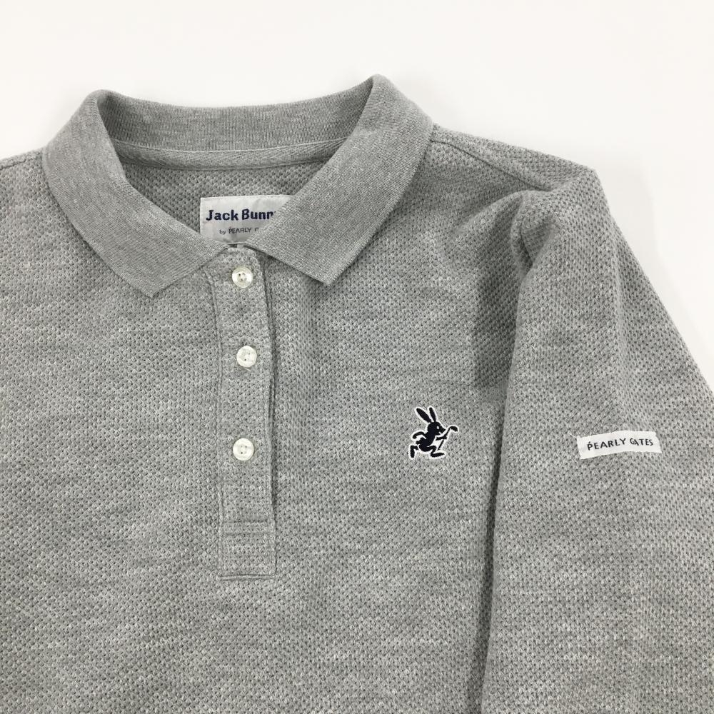 【美品】ジャックバニー 長袖ポロシャツ グレー ロゴ刺しゅう レディース 1(M) ゴルフウェア Jack Bunny