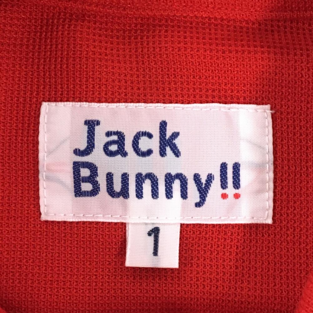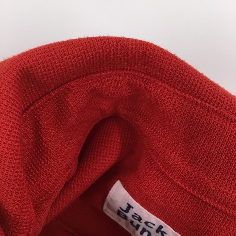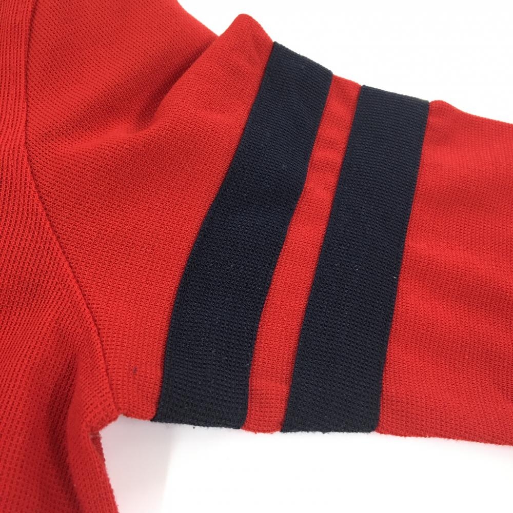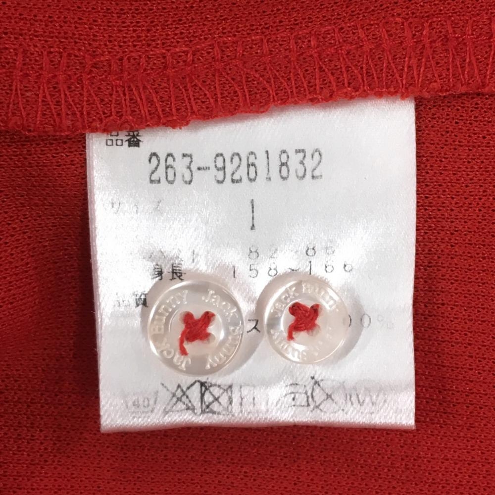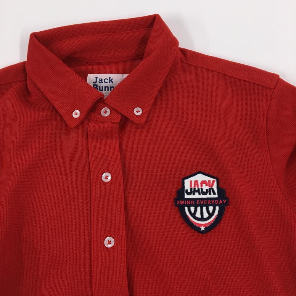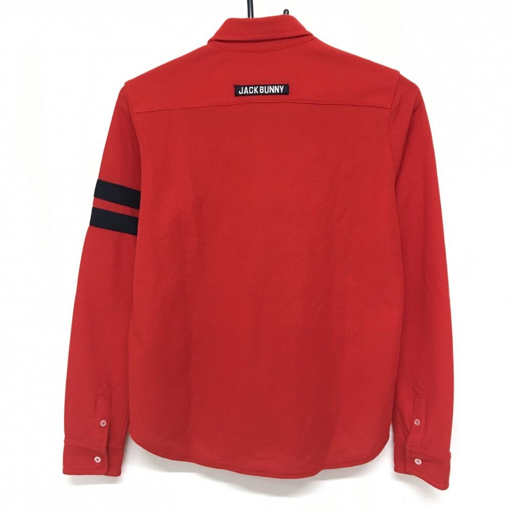 【美品】ジャックバニー 長袖シャツ レッド×ネイビー ボタンダウン 袖2ライン レディース 1(M) ゴルフウェア Jack Bunny