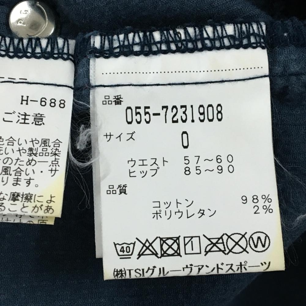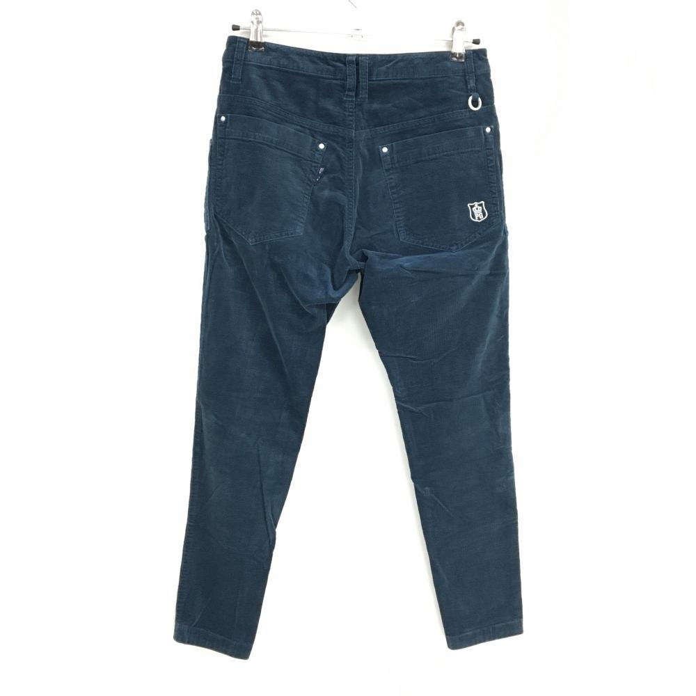 【美品】パーリーゲイツ コーデュロイパンツ ネイビー ロゴ白 ティー装着可 レディース 0(S) ゴルフウェア PEARLY GATES