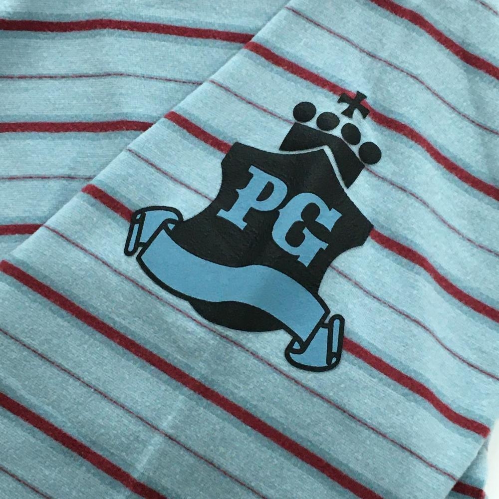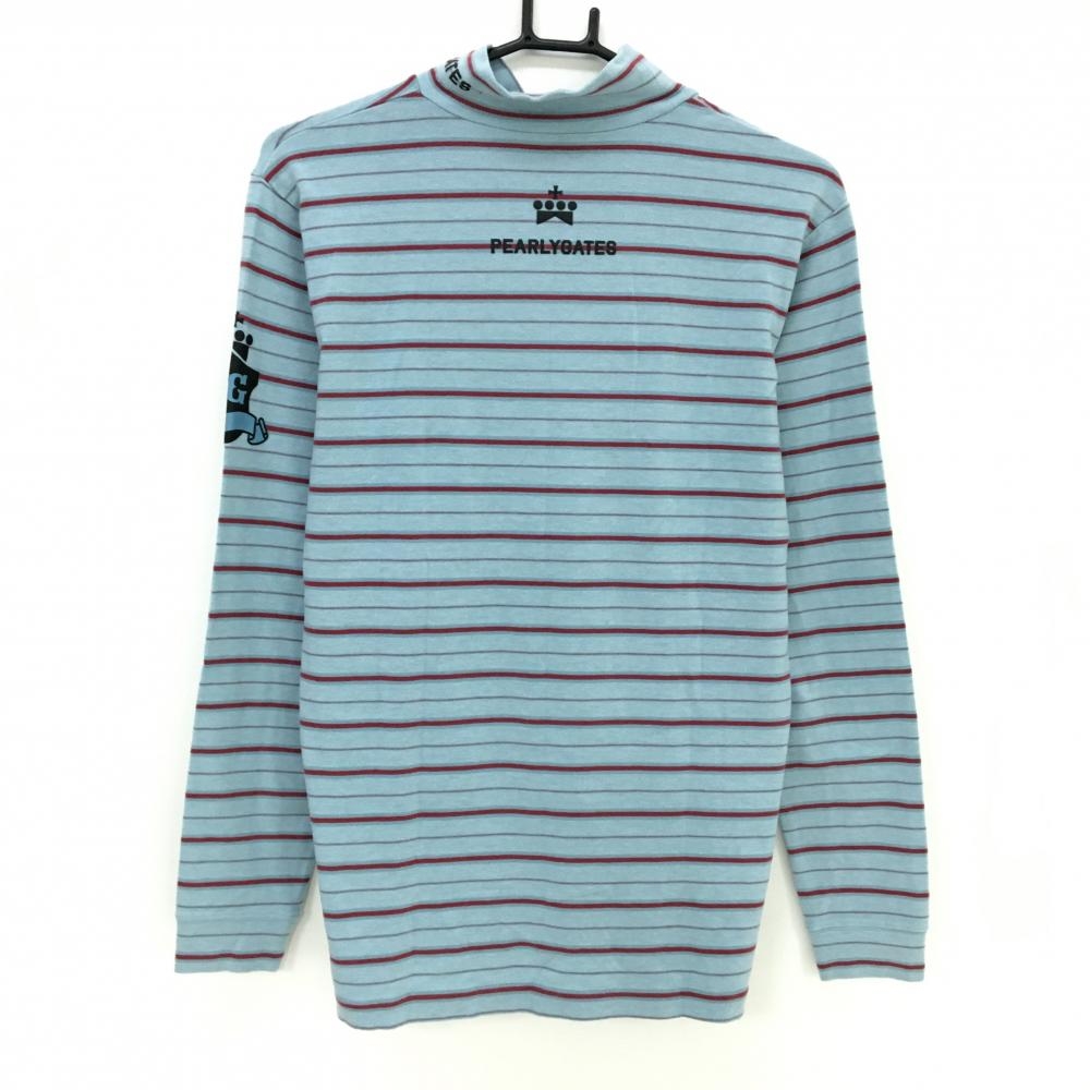 パーリーゲイツ 長袖ハイネックシャツ ライトブルー×レッド ボーダー 表微起毛 メンズ L ゴルフウェア PEARLY GATES