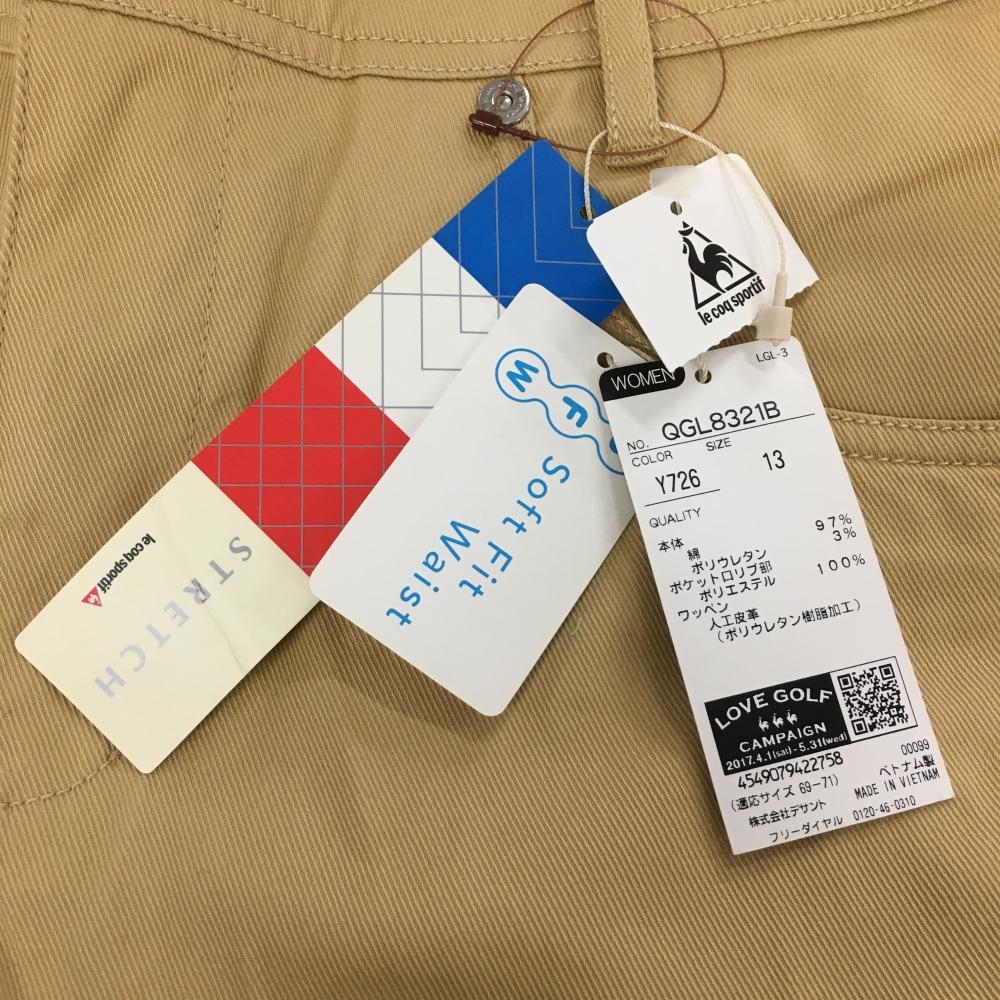 【新品】ルコックゴルフ パンツ ベージュ系×レッド サイドロゴ ストレッチ レディース 13 ゴルフウェア le coq sportif