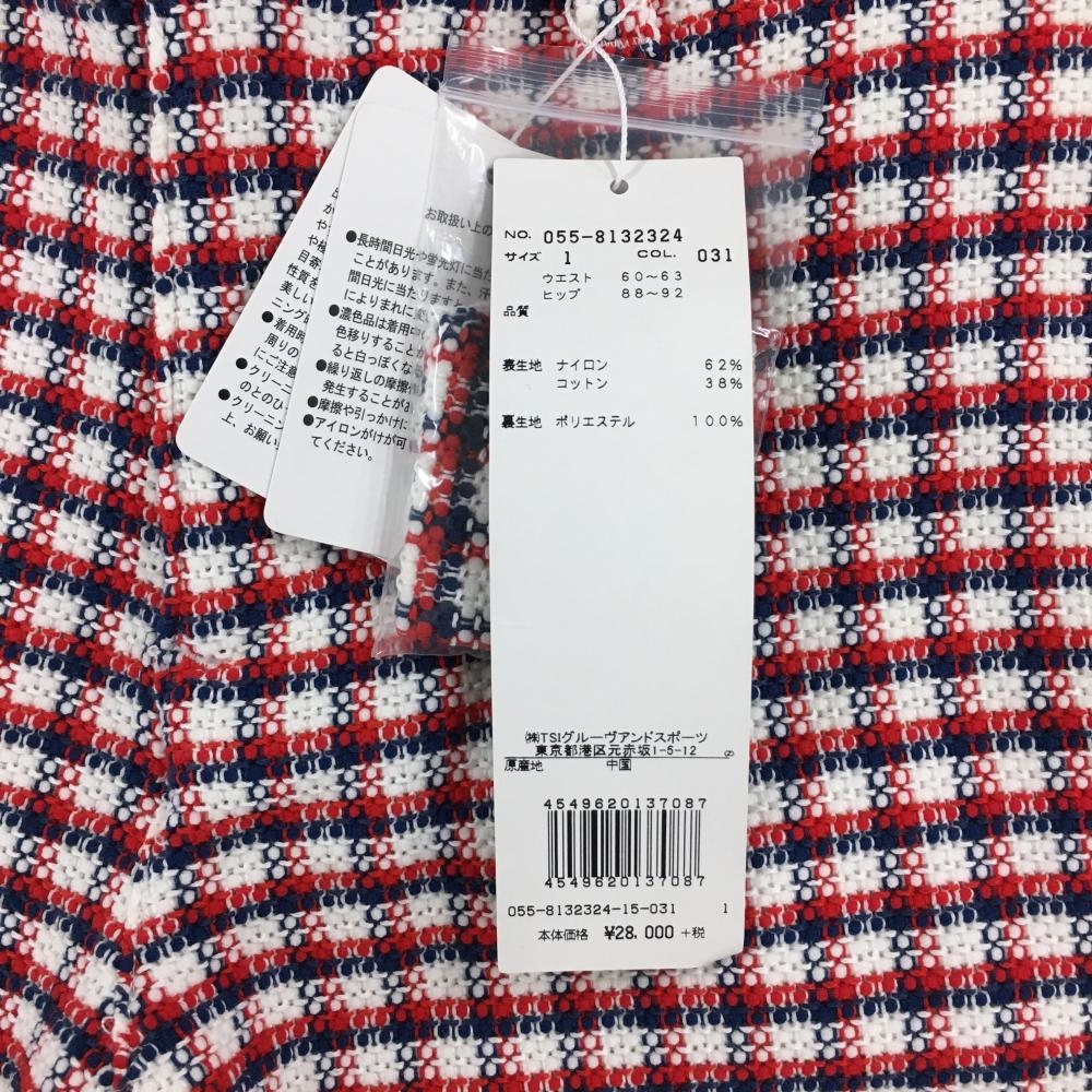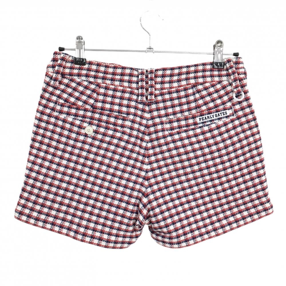 【新品】パーリーゲイツ ニットショートパンツ 白×レッド×ネイビー チェック 裏地付 レディース 1(M) ゴルフウェア PEARLY GATES