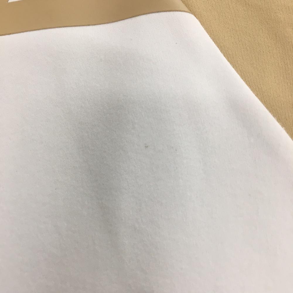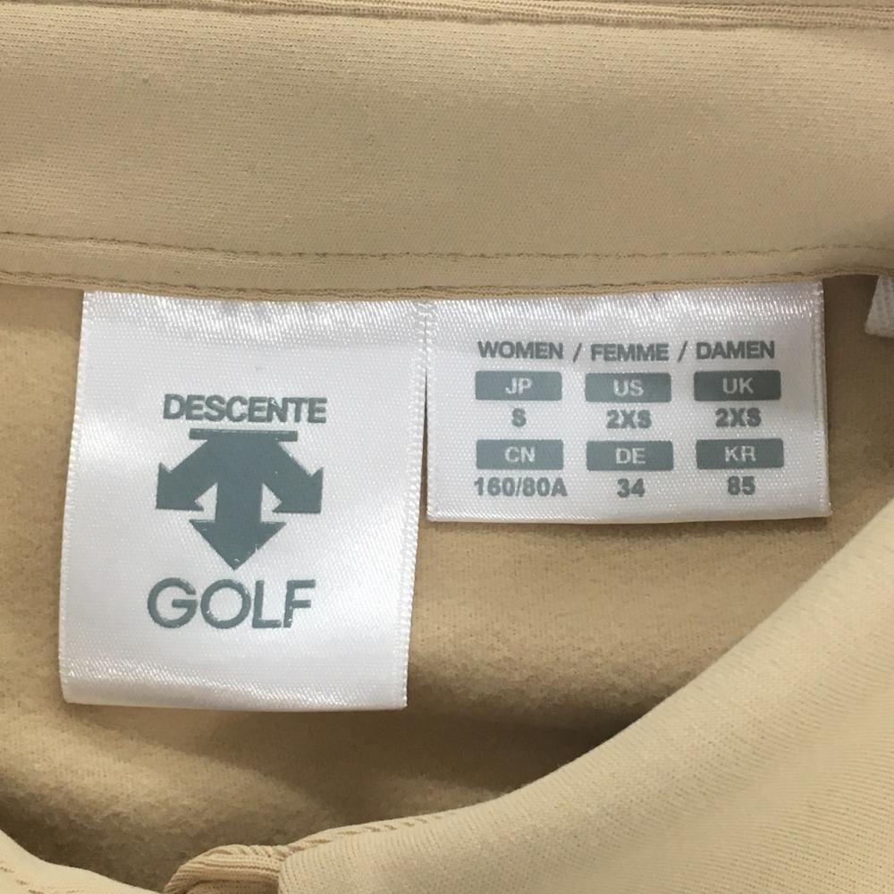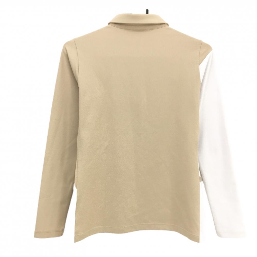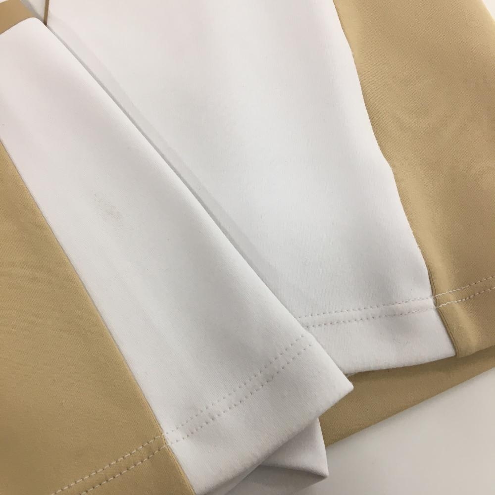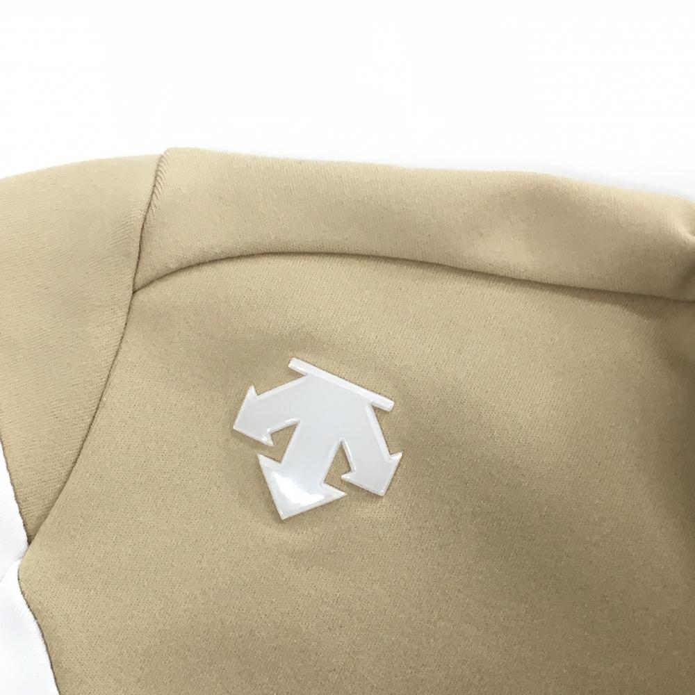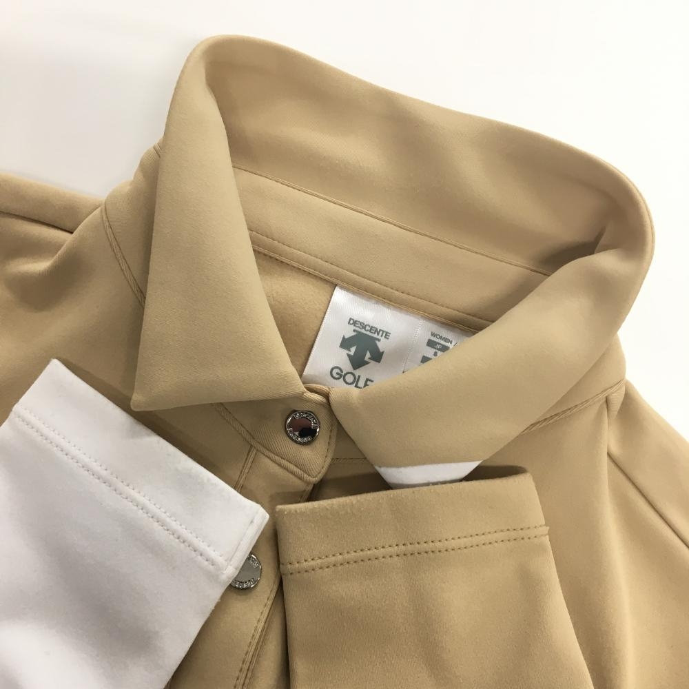 デサントゴルフ 長袖ポロシャツ ベージュ×白 バイカラー 一部柄 中田英寿 襟・袖口毛羽立ち、 レディース S ゴルフウェア DESCENTE