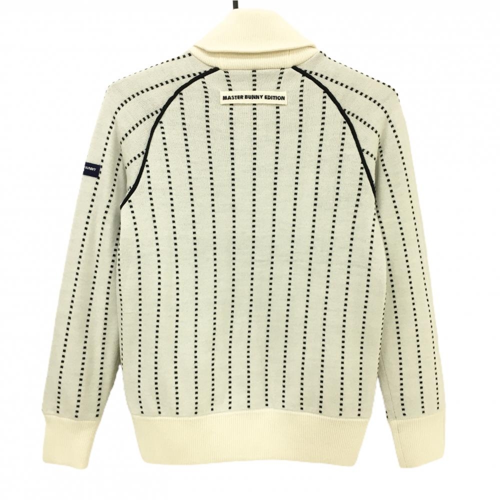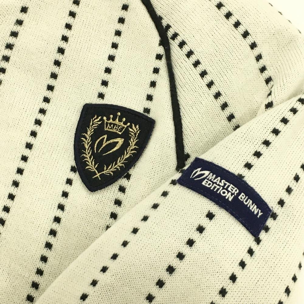 【美品】マスターバニー ニットジャケット 白×黒 ストライプ風 裏地付き レディース 0(S) ゴルフウェア MASTER BUNNY EDITION