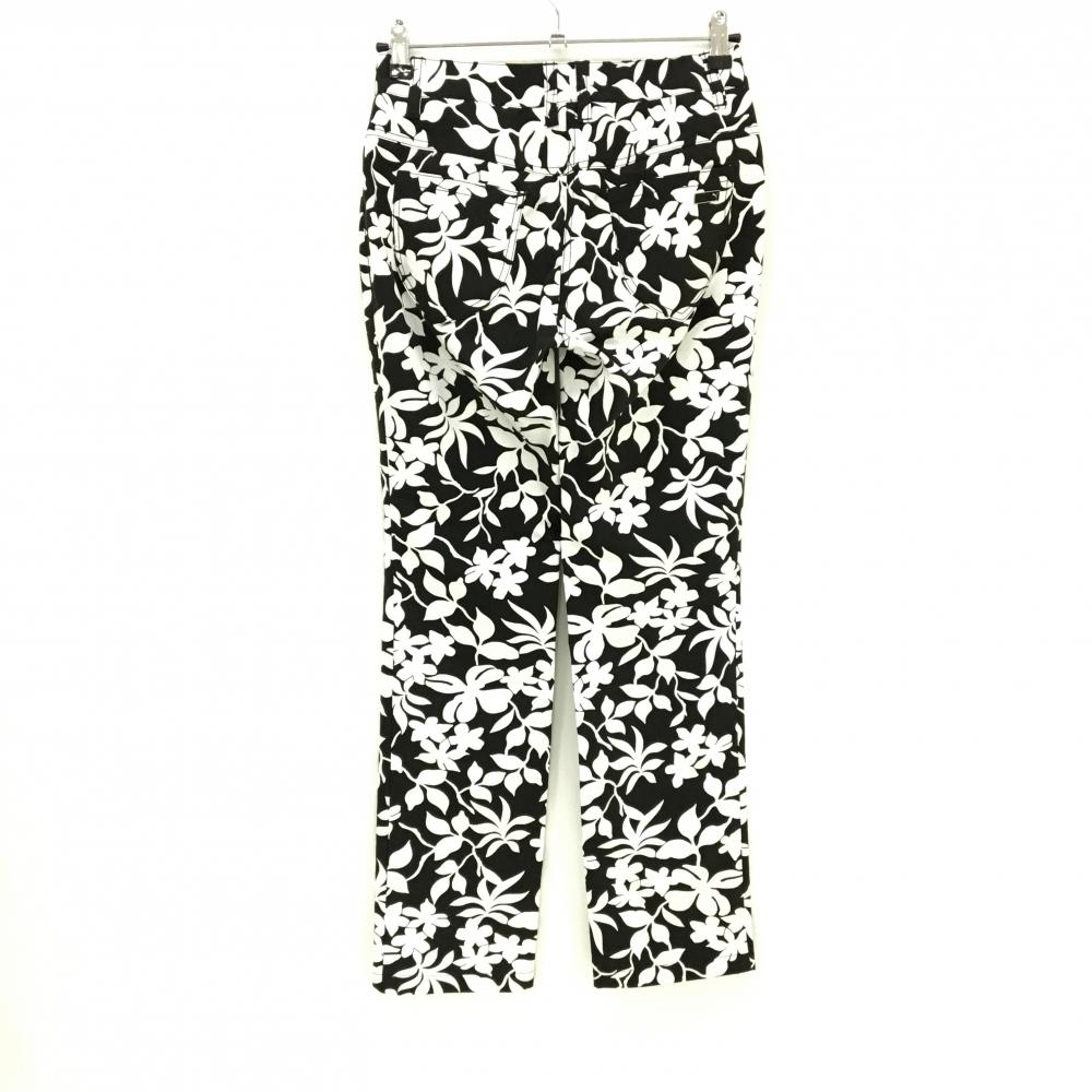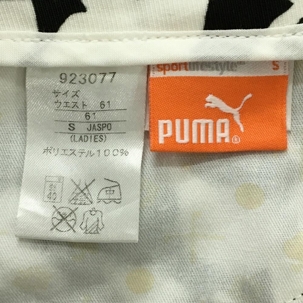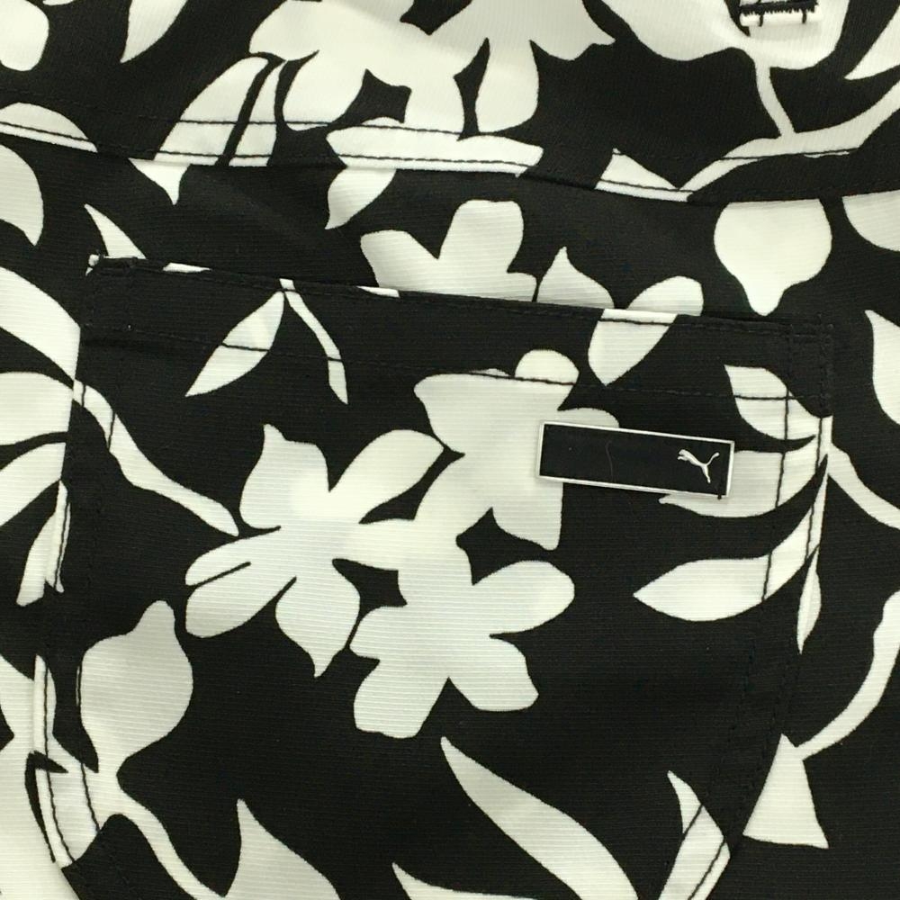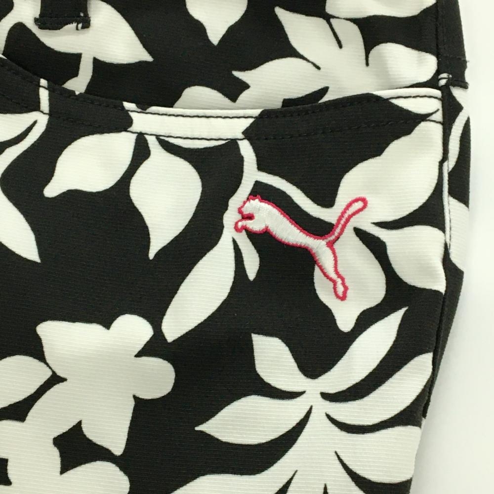 【美品】プーマ パンツ 黒×白 リーフ柄 ストレッチ ロゴ刺しゅう レディース 61/S ゴルフウェア PUMA