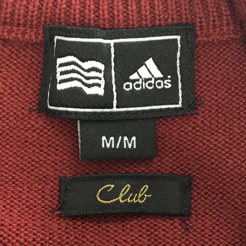 【美品】アディダス ニットジャケット ボルドー×黒 一部ボーダー風 メンズ M/M ゴルフウェア adidas
