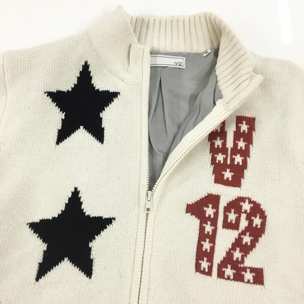 V12 ニットジャケット 白×ネイビー×レッド 星 ラムウール混 裏地付 メンズ M/M ゴルフウェア V12