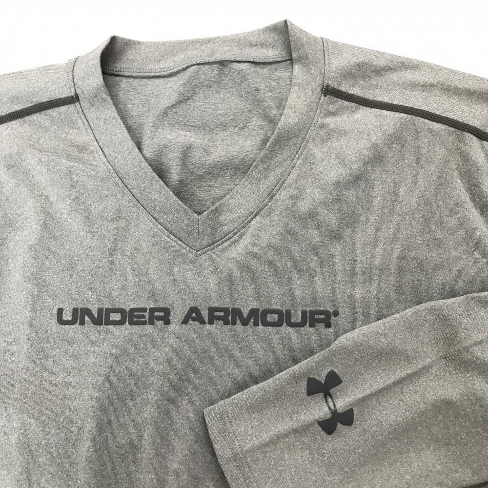 【超美品】アンダーアーマー インナーシャツ グレー×ダークグレー フロントロゴ メンズ XL ゴルフウェア UNDER ARMOUR